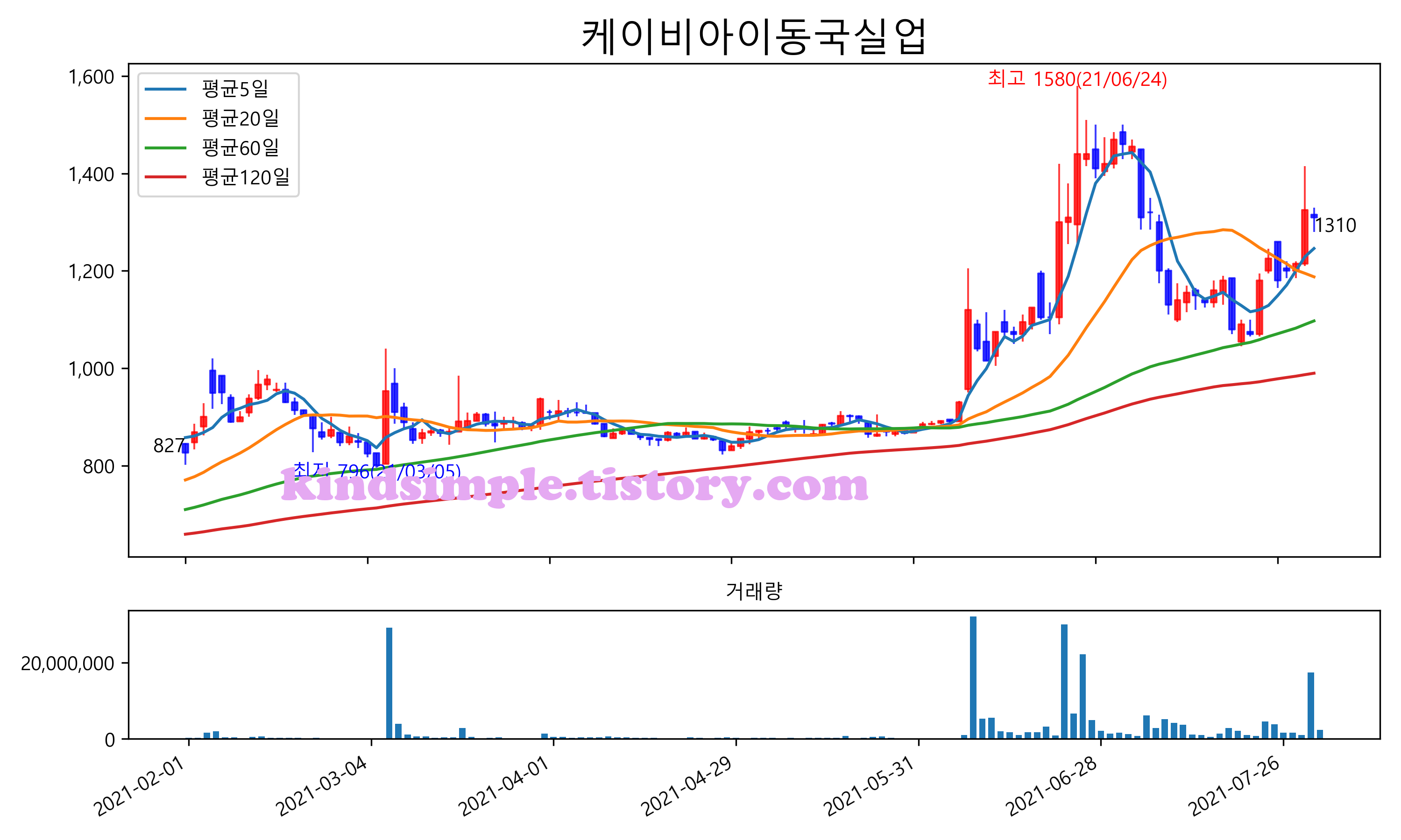 최근 6개월간 캔들차트 및 이동평균선입니다.