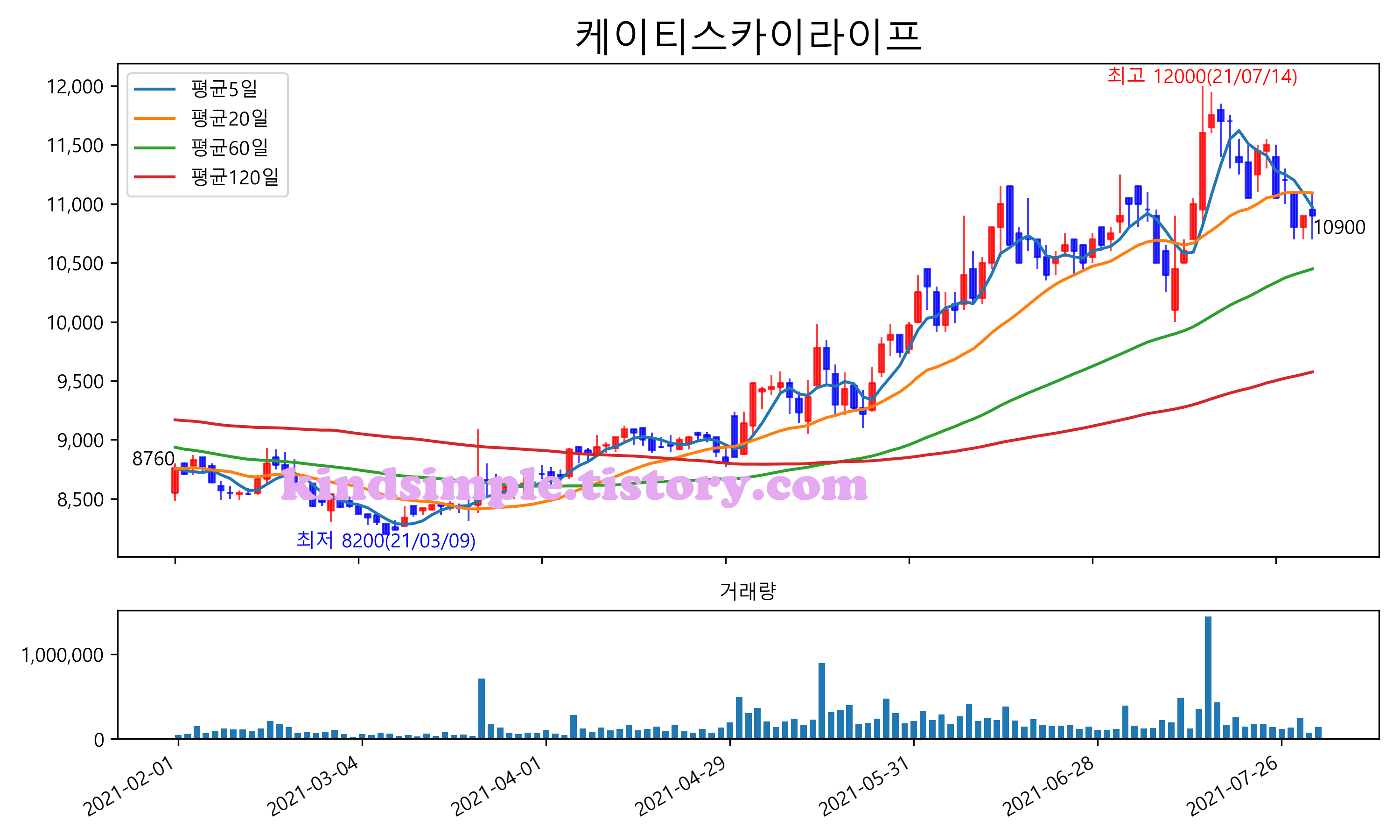 최근 6개월간 캔들차트 및 이동평균선입니다.