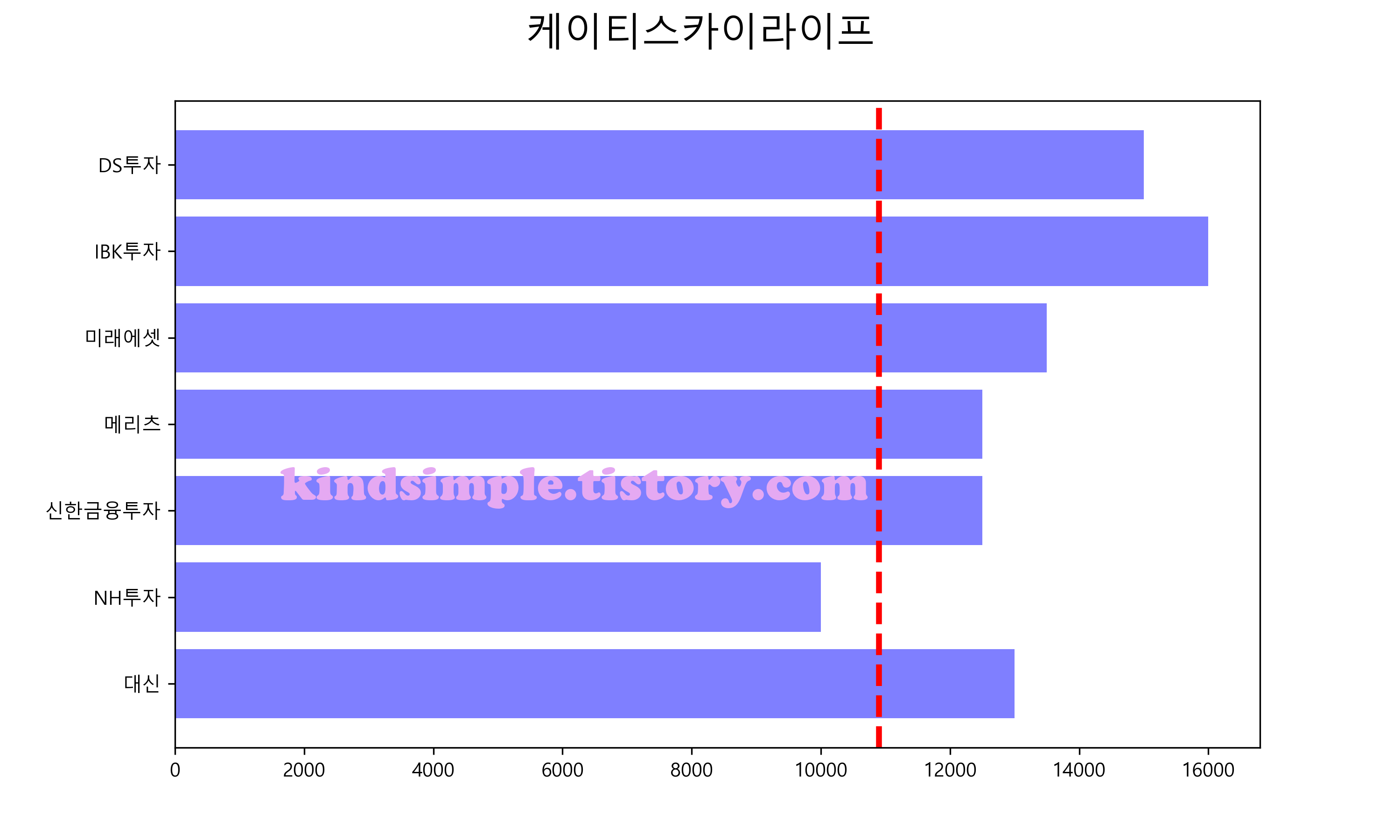 아래 그래프의 빨간색 점선이 현재 주가입니다.