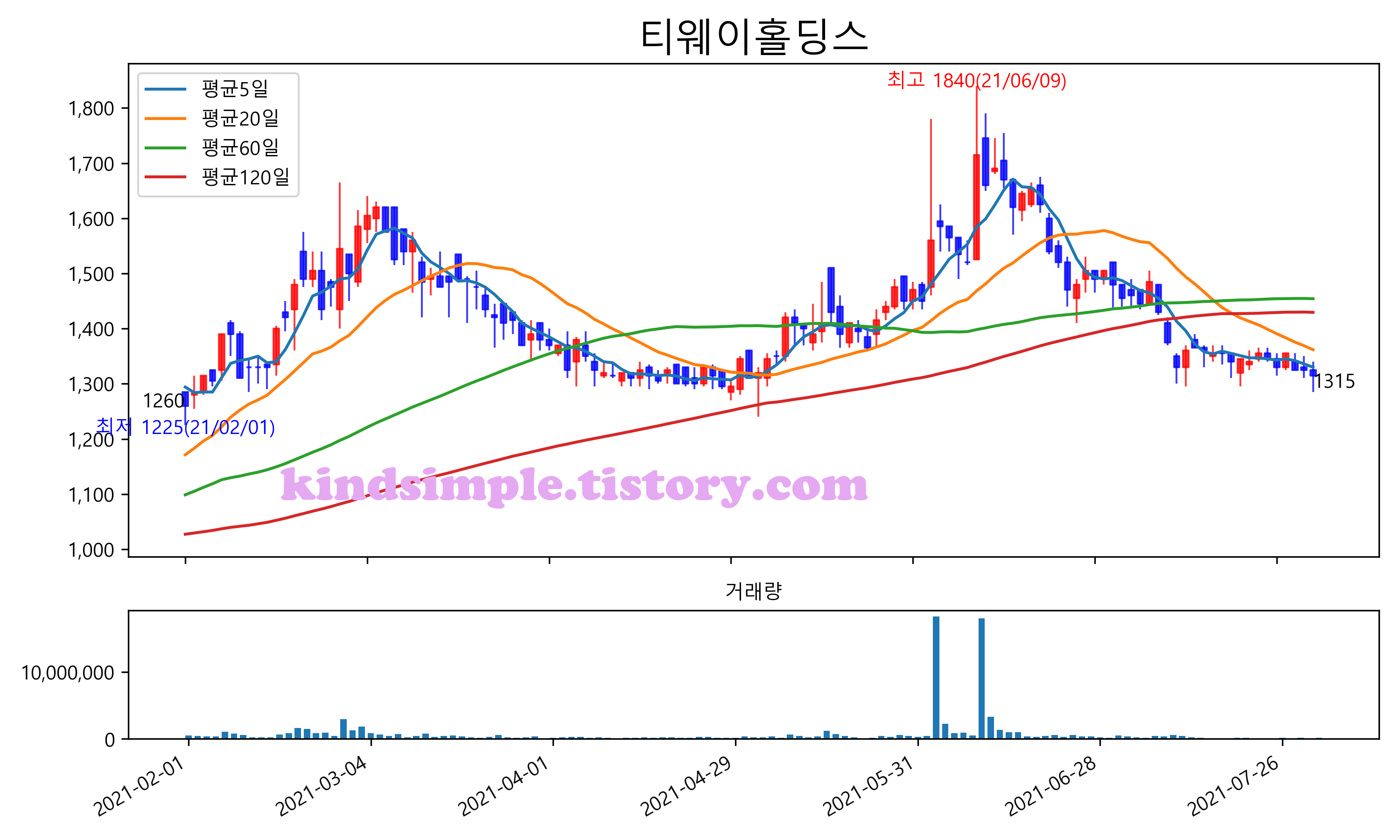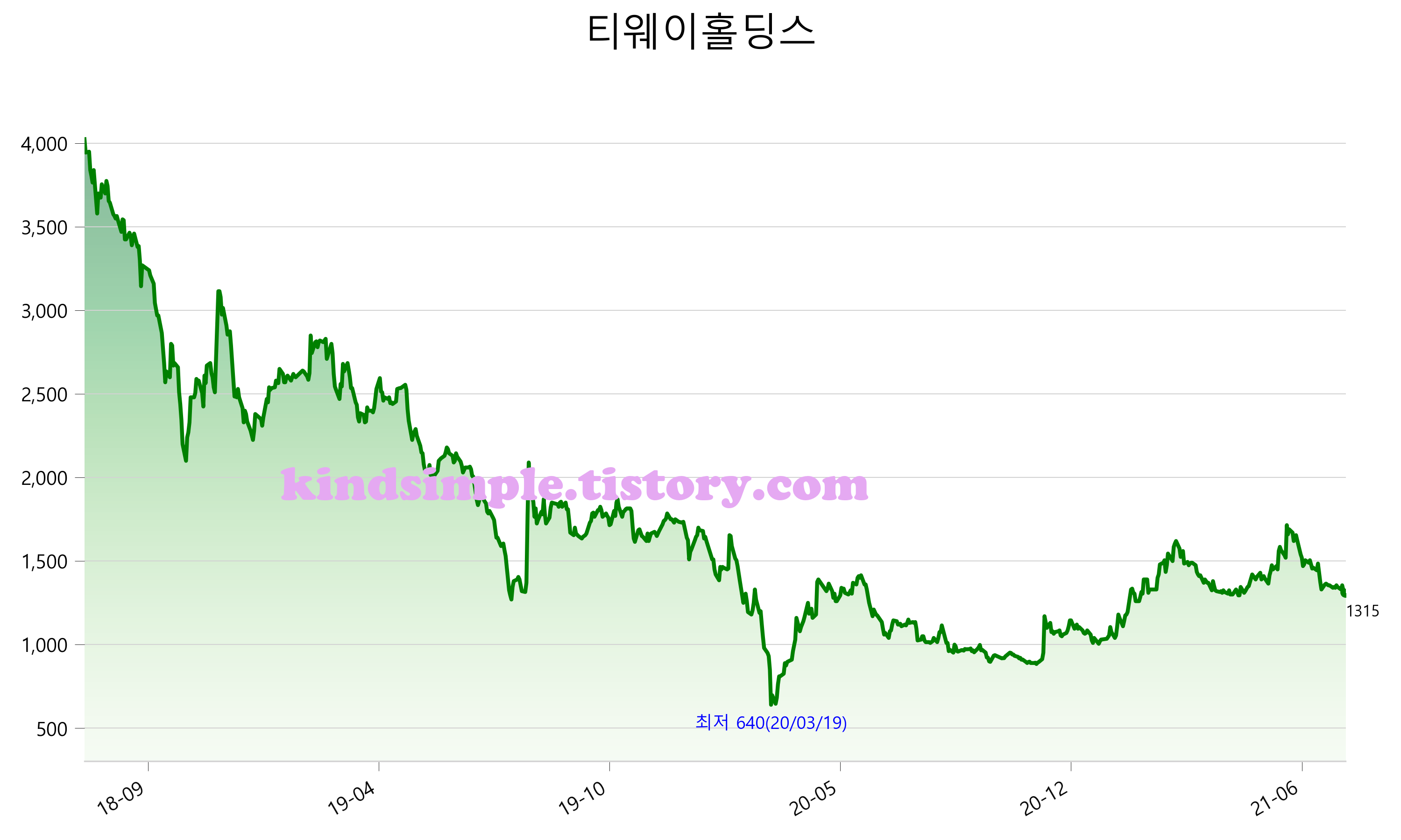 7월 31일 기준 주가는 1,315원 입니다. 아래는 최근 3년간의 주가흐름입니다.