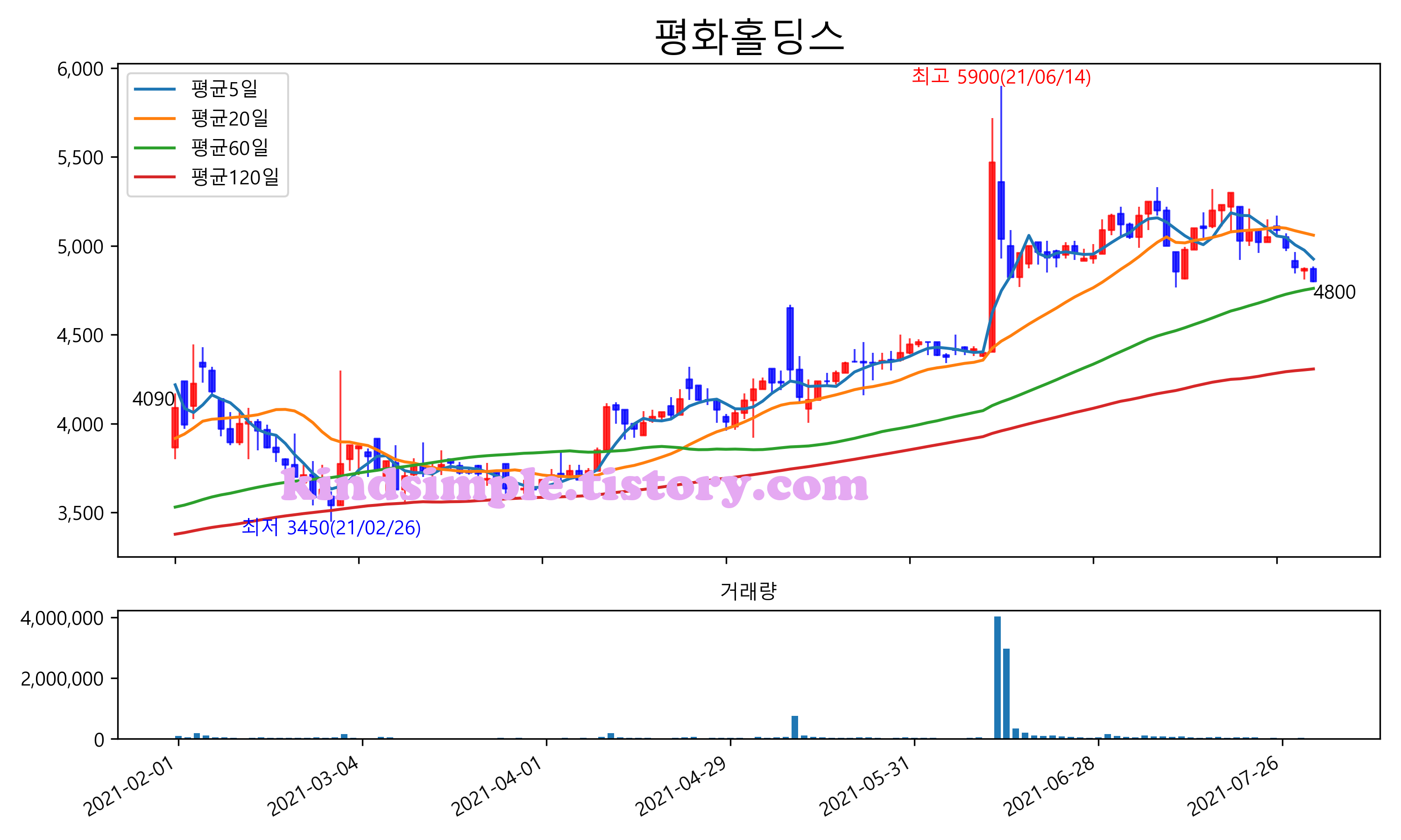 7월 31일 기준 주가는 4,800원 입니다. 아래는 최근 3년간의 주가흐름입니다.