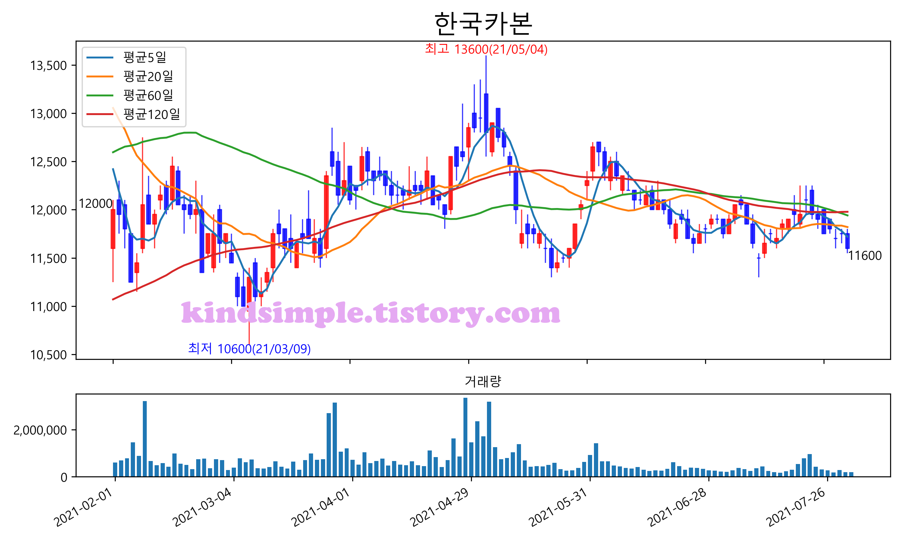 최근 6개월간 캔들차트 및 이동평균선입니다.