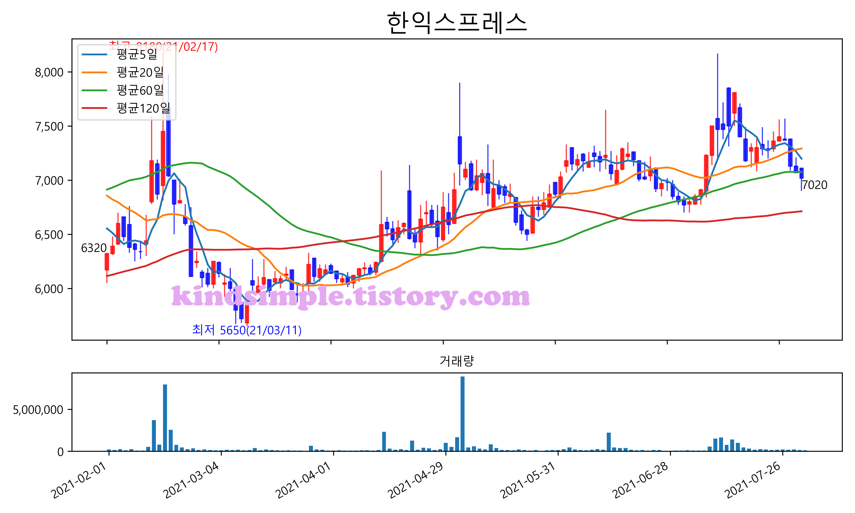 최근 6개월간 캔들차트 및 이동평균선입니다.