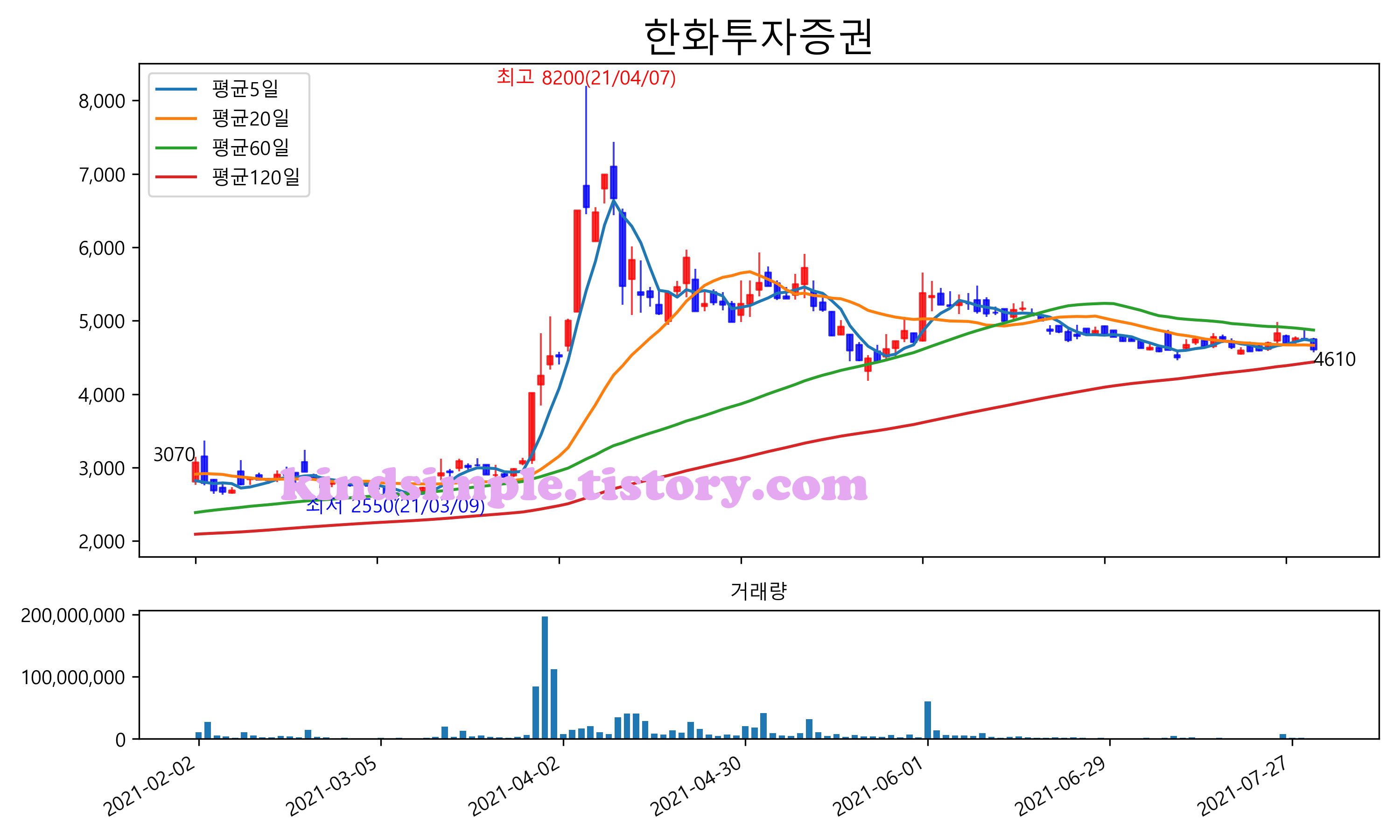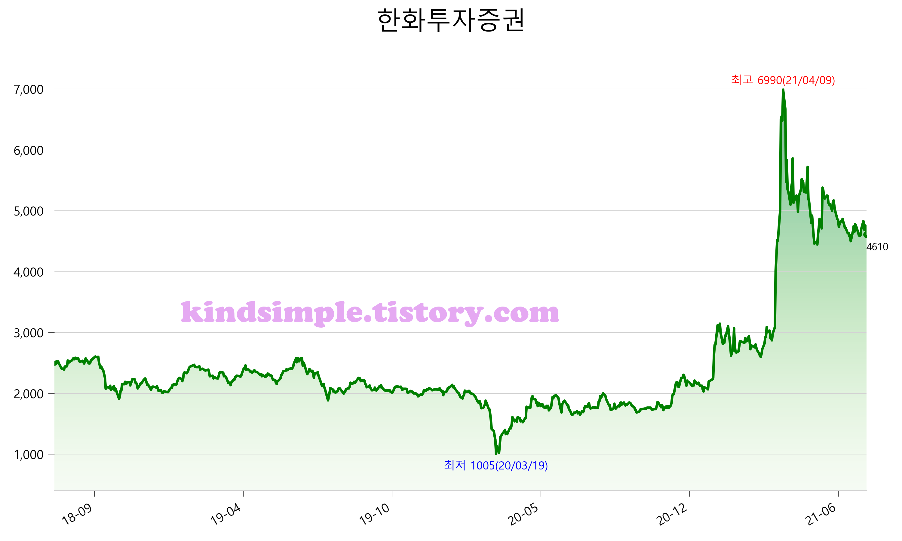 8월 1일 기준 주가는 4,610원 입니다. 아래는 최근 3년간의 주가흐름입니다.