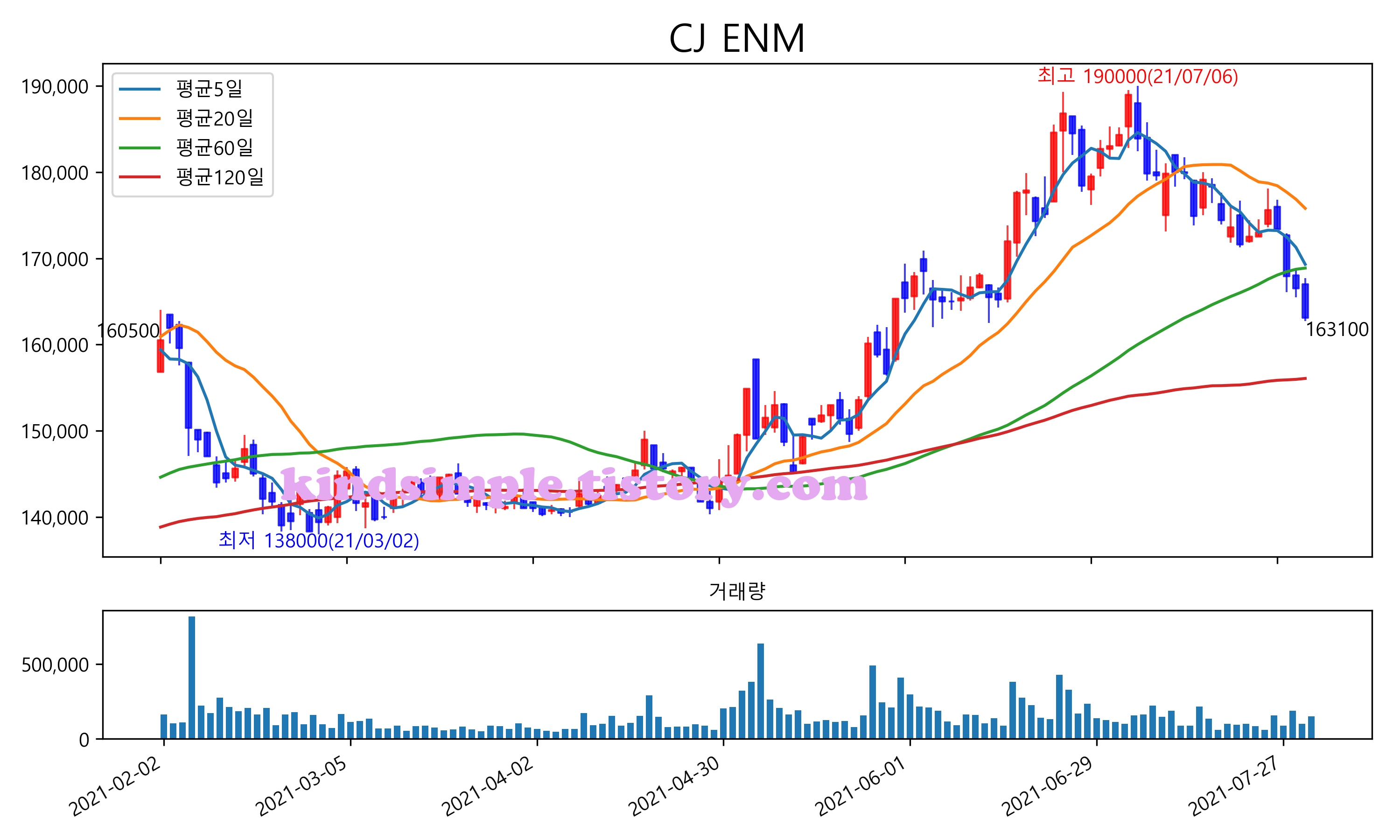 8월 1일 기준 주가는 163,100원 입니다. 아래는 최근 3년간의 주가흐름입니다.