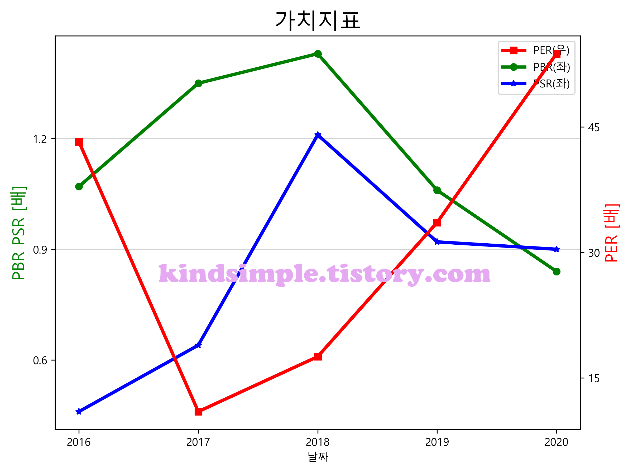 - PER : 34.52배, 동일업종 PER : -19.78배