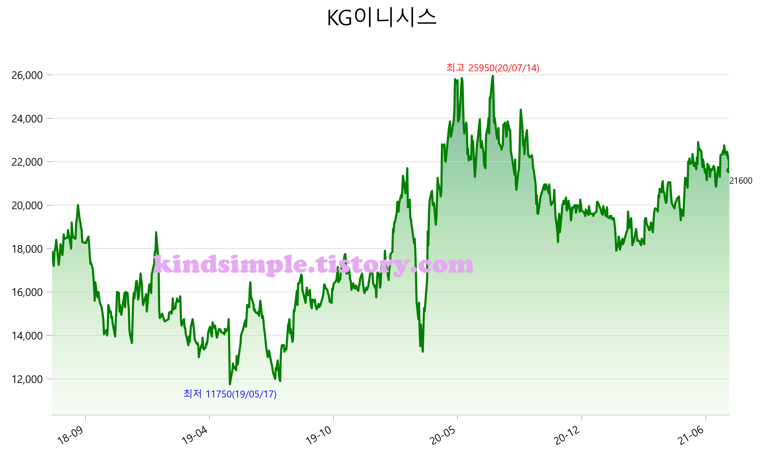 8월 1일 기준 주가는 21,600원 입니다. 아래는 최근 3년간의 주가흐름입니다.