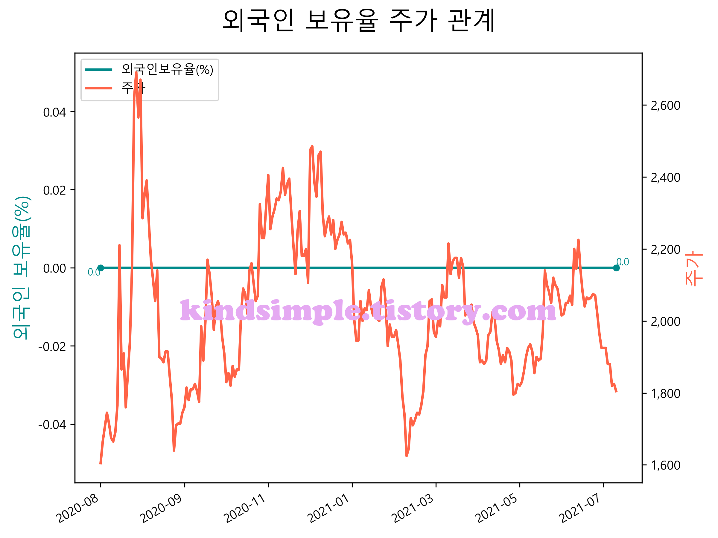 최근 1년간 외국인 보유율 및 주가와의 관계입니다.