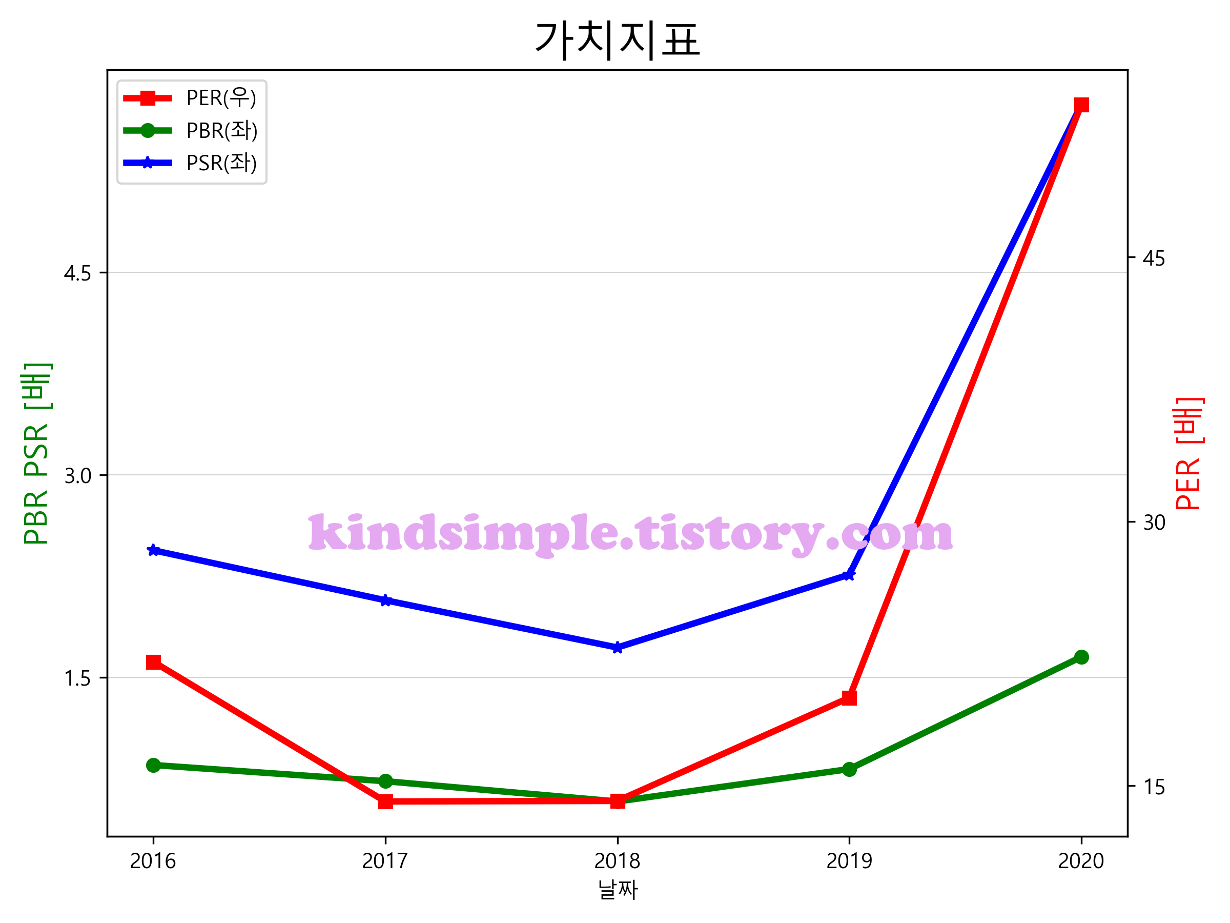 - PER : 34.06배, 동일업종 PER : -19.78배