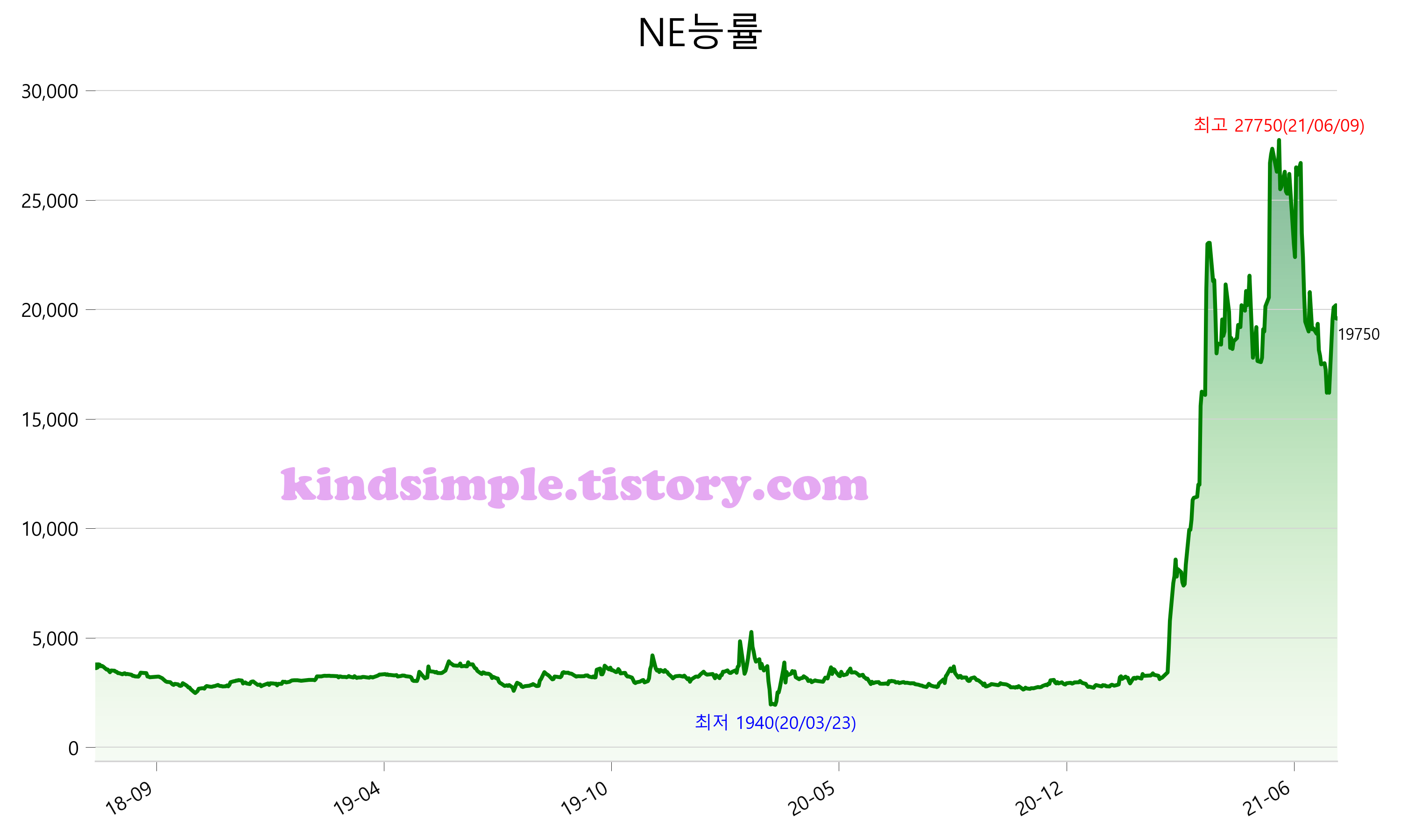 52주 최고가는 27,750원(2021-06-09), 52주 최저가는 2,640원(2020-10-27)으로 52주간 변동률은 616.9% 입니다.