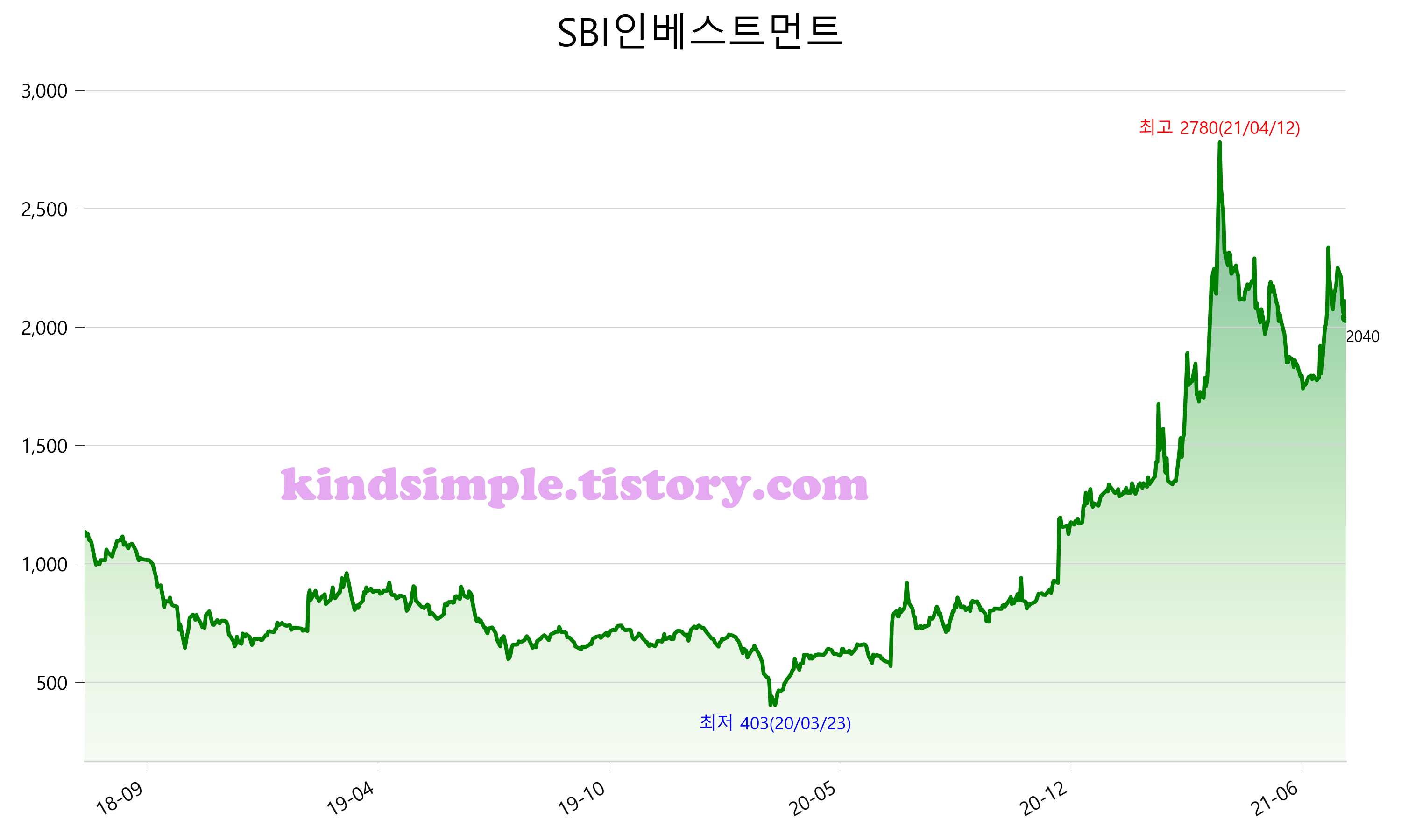 8월 1일 기준 주가는 2,040원 입니다. 아래는 최근 3년간의 주가흐름입니다.