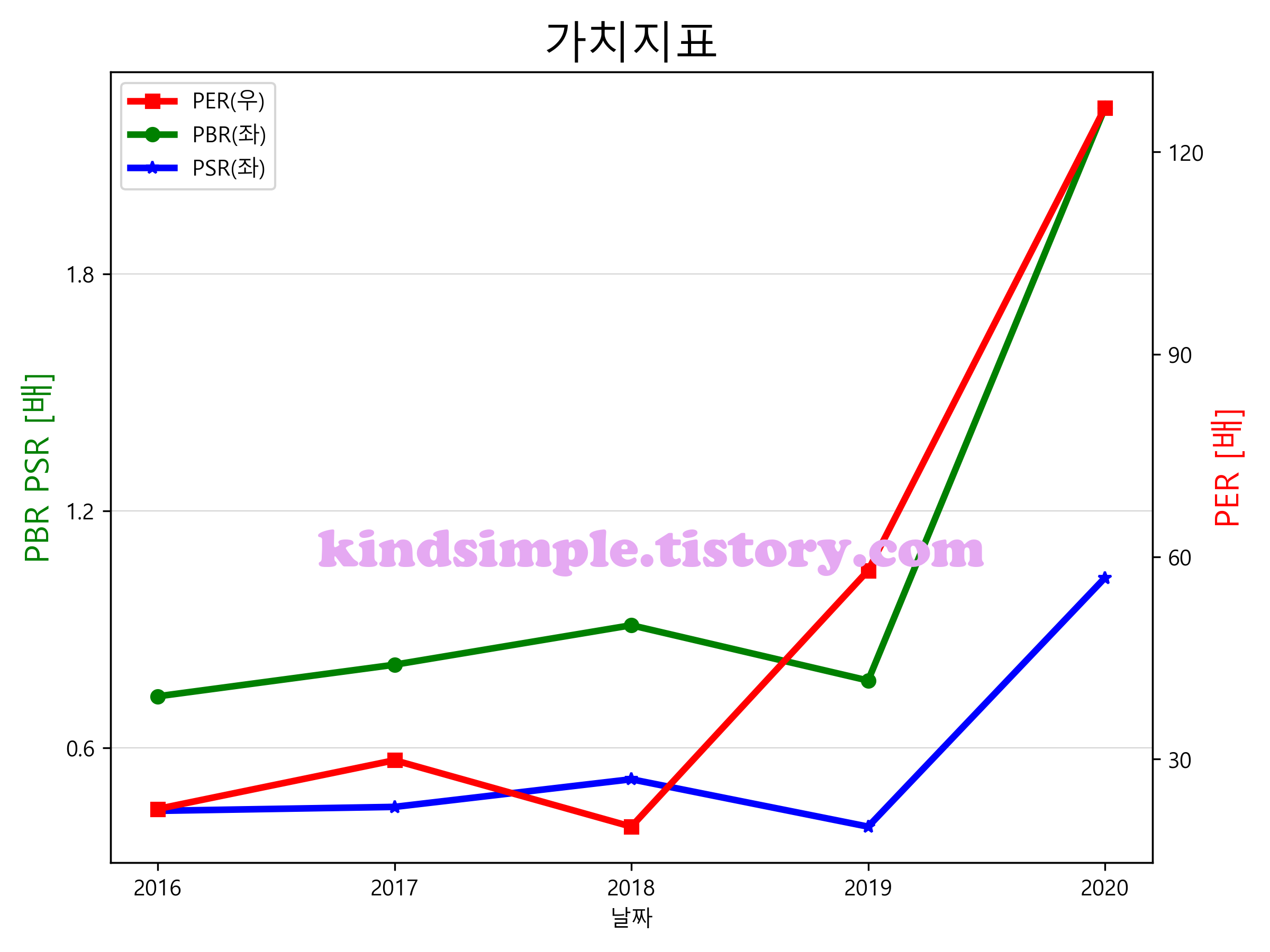 - PER : 54.86배, 동일업종 PER : -509.40배