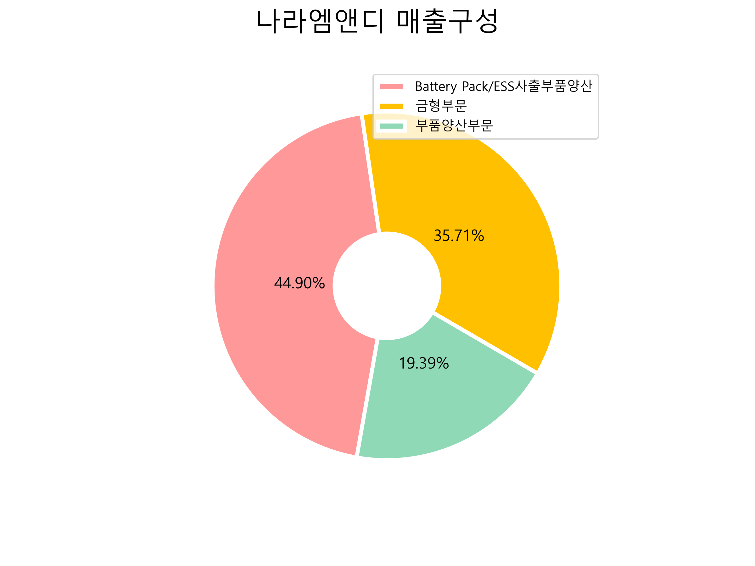 - 2021년 1분기 기준 매출비중은 금형부문 35.7%, 배터리팩 부문 44.4%, 부품양산 부문 19.9%로 구성됨.