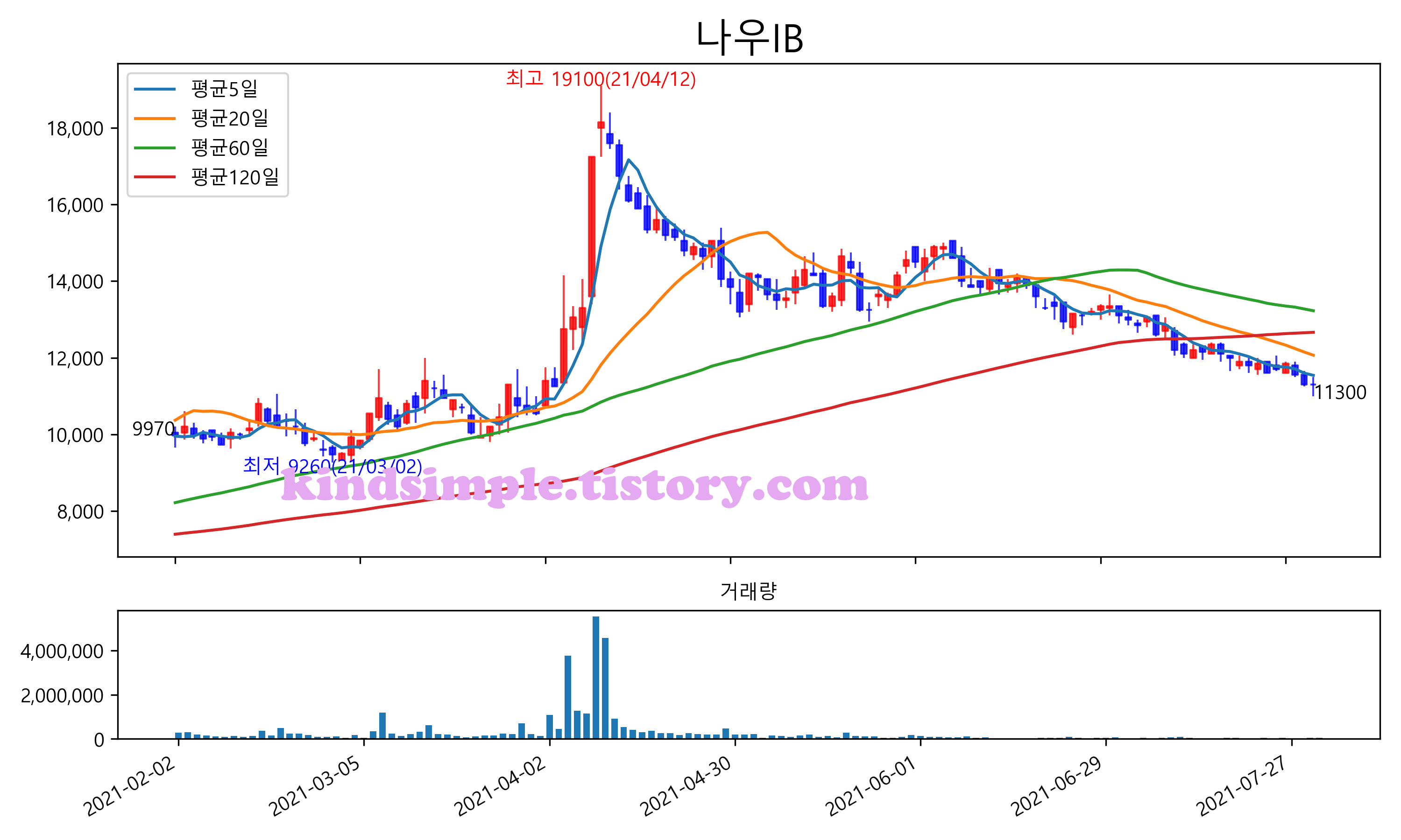최근 6개월간 캔들차트 및 이동평균선입니다.