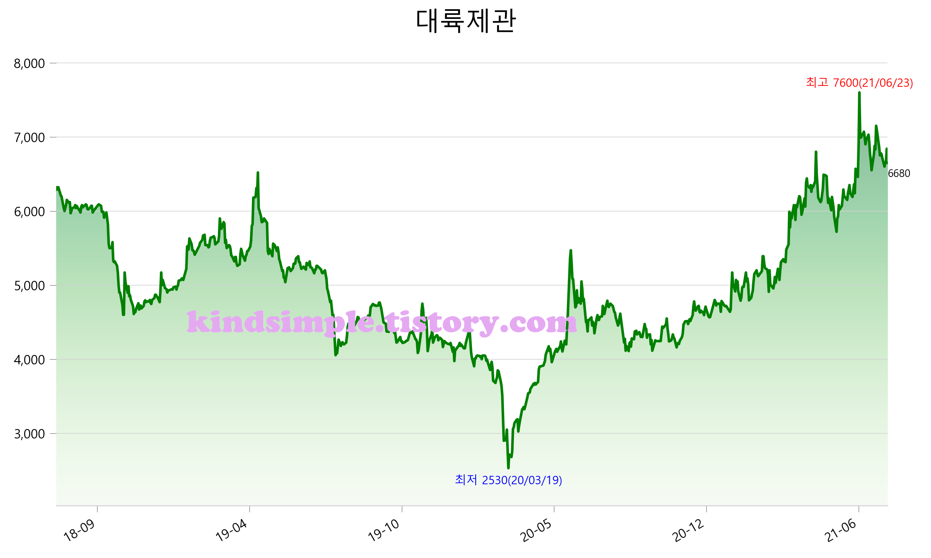 8월 1일 기준 주가는 6,680원 입니다. 아래는 최근 3년간의 주가흐름입니다.