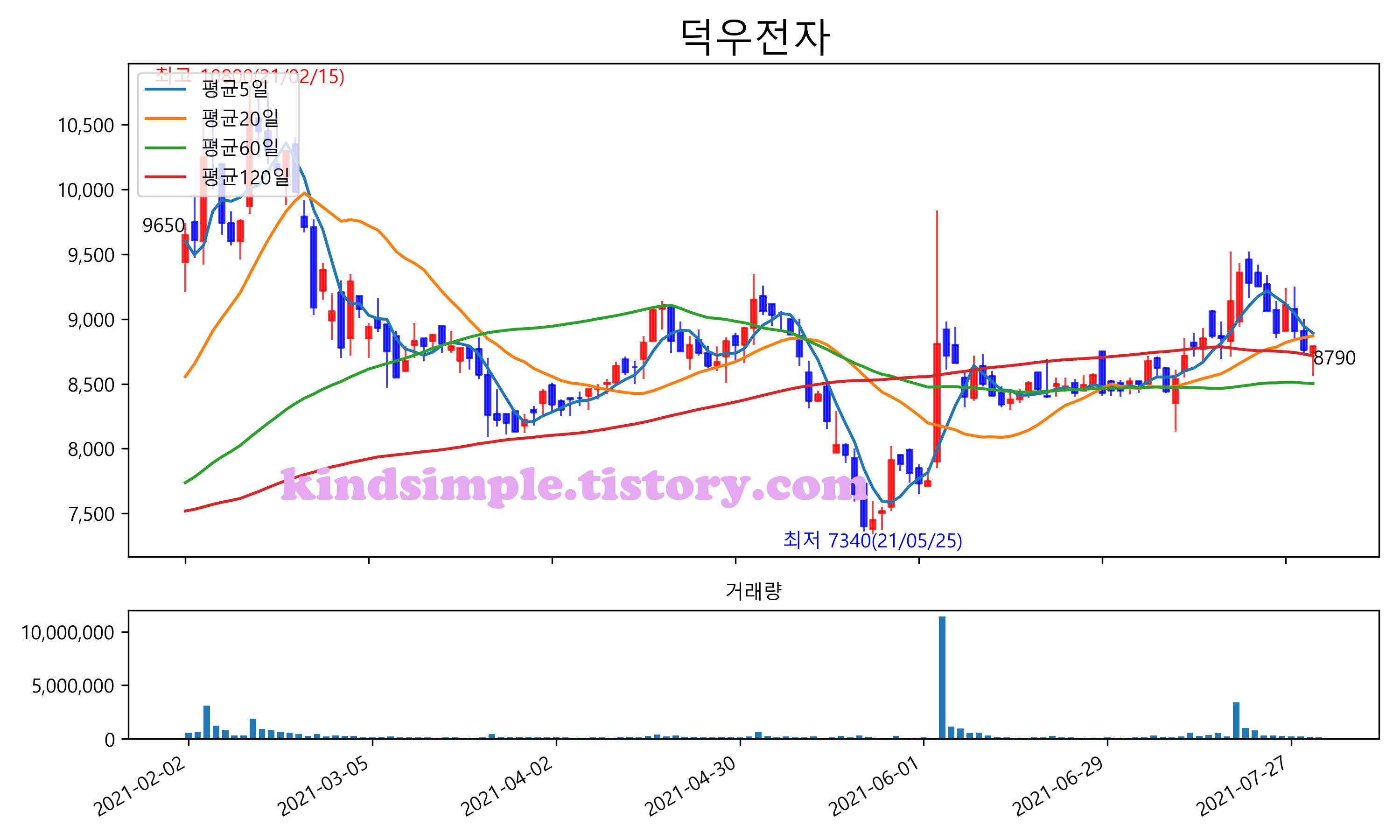 최근 6개월간 캔들차트 및 이동평균선입니다.