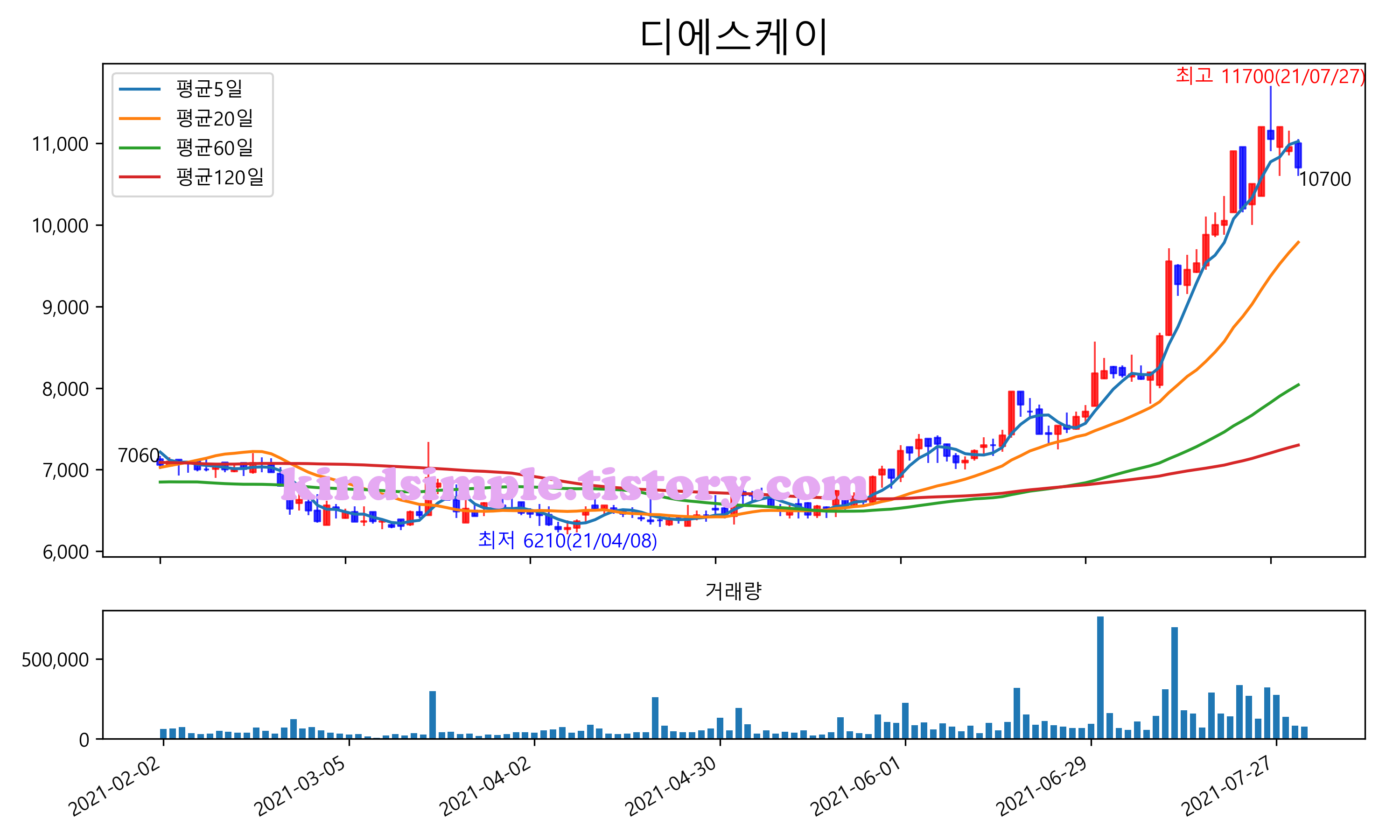 최근 6개월간 캔들차트 및 이동평균선입니다.