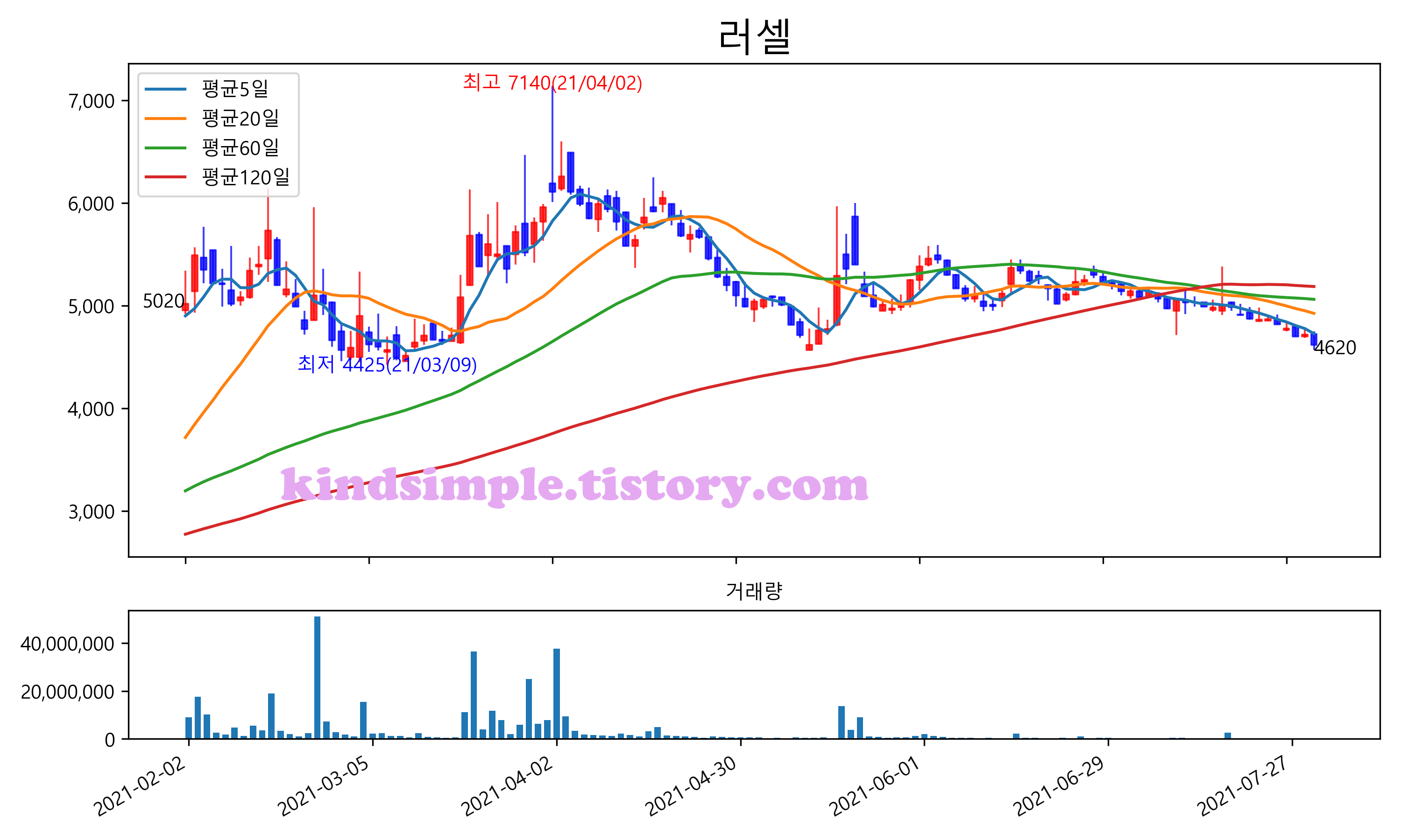 8월 1일 기준 주가는 4,620원 입니다. 아래는 최근 3년간의 주가흐름입니다.