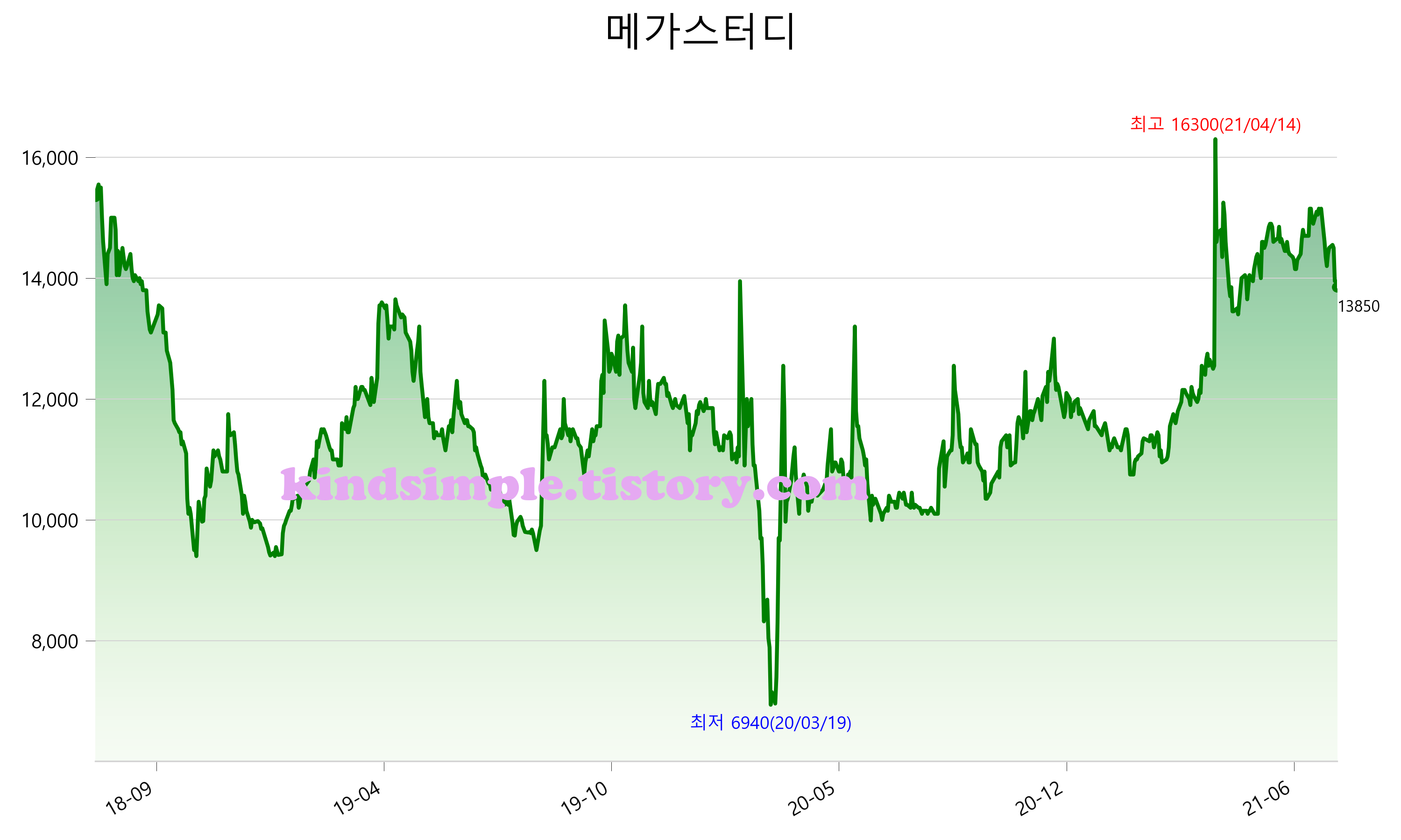 8월 1일 기준 주가는 13,850원 입니다. 아래는 최근 3년간의 주가흐름입니다.