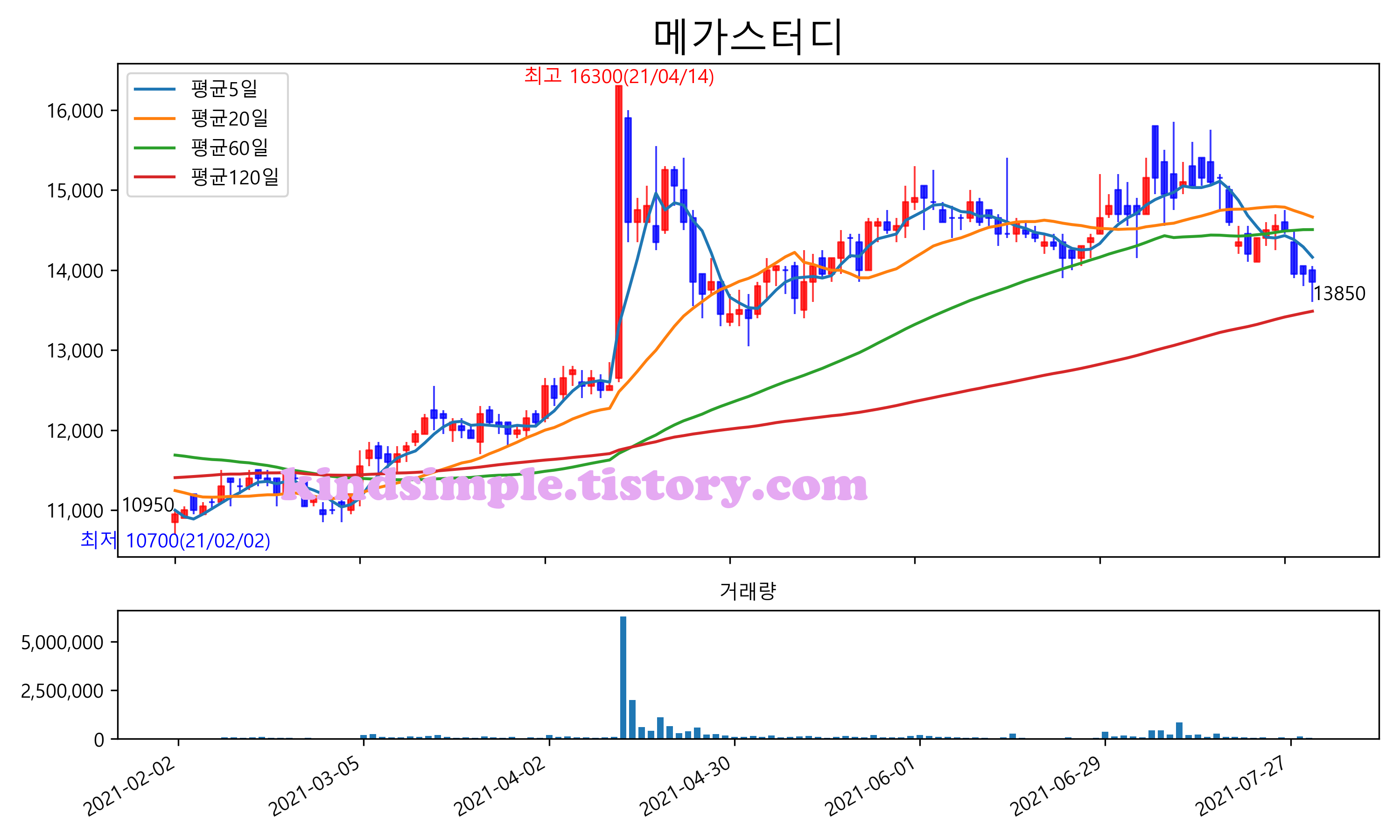 최근 6개월간 캔들차트 및 이동평균선입니다.