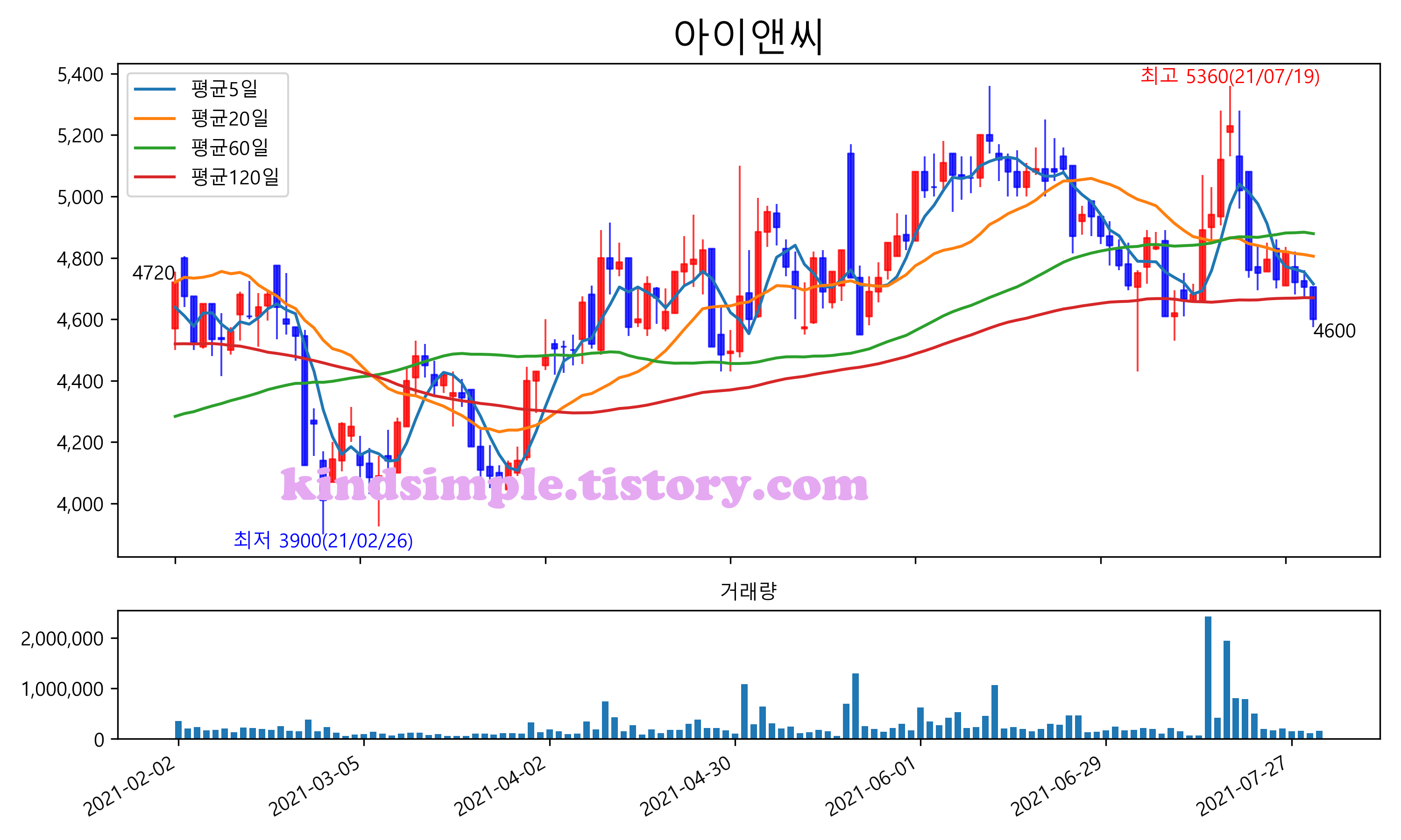 8월 1일 기준 주가는 4,600원 입니다. 아래는 최근 3년간의 주가흐름입니다.