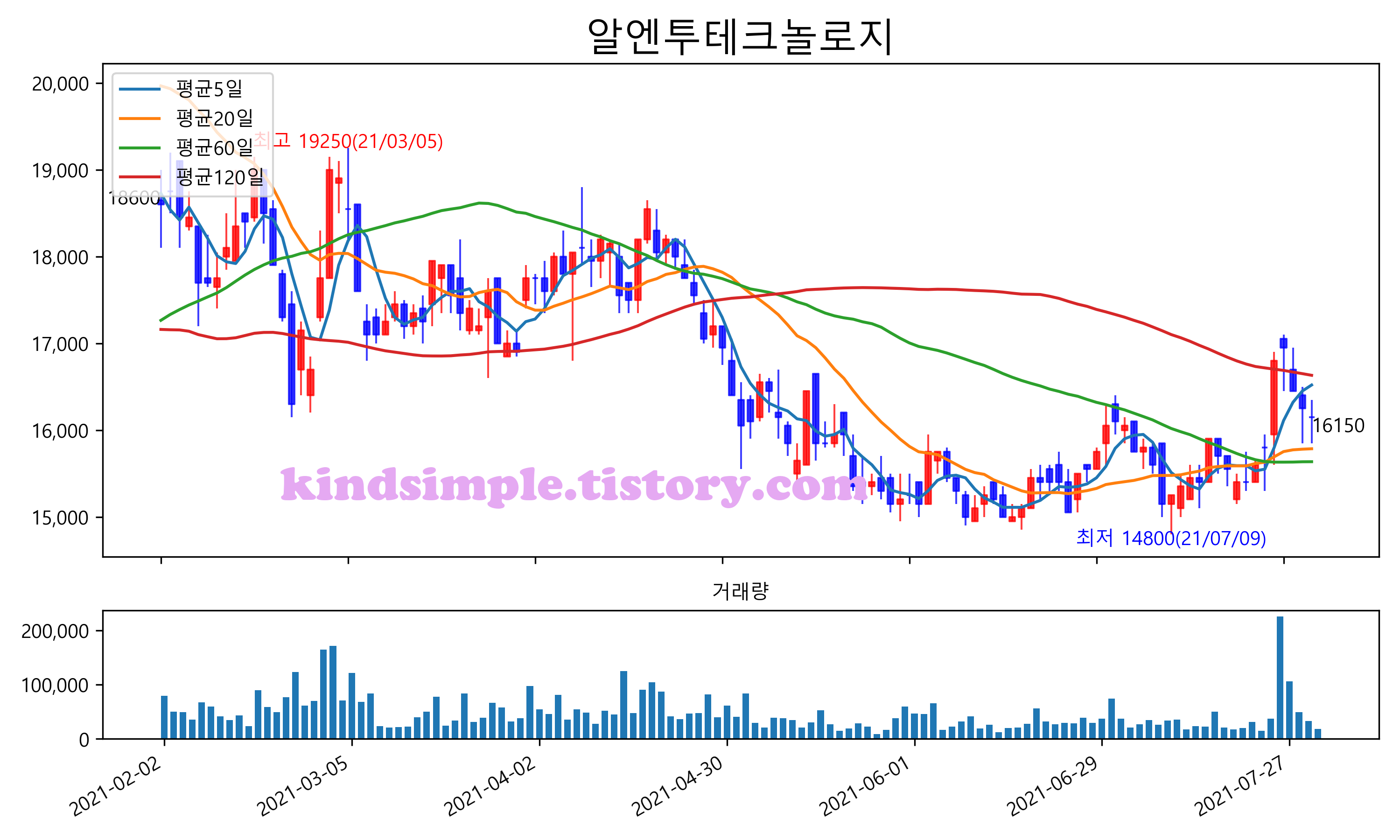 최근 6개월간 캔들차트 및 이동평균선입니다.