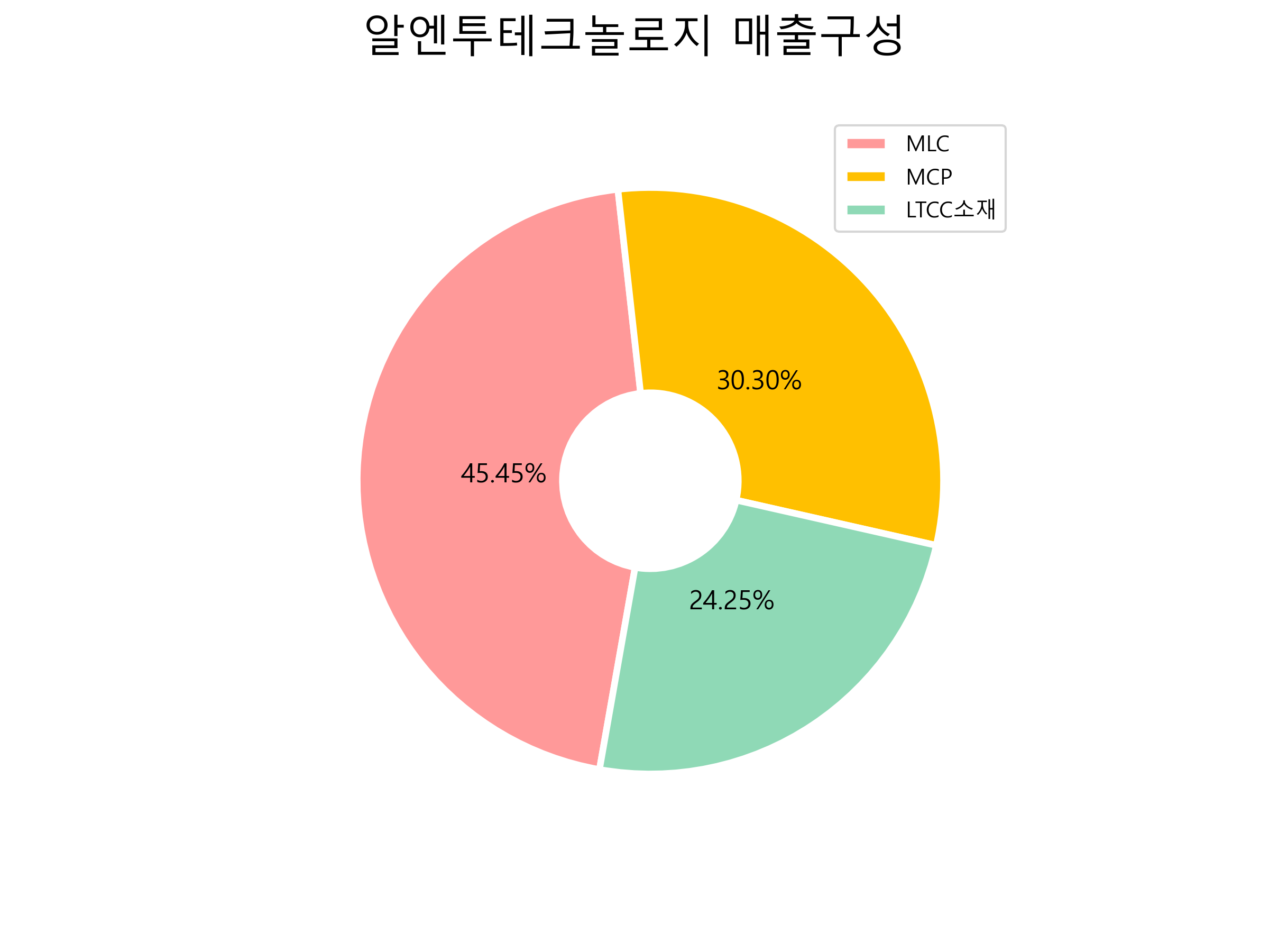 - 매출은 MLC 45.25%, MCP 30.61%, Material 24.14% 등으로 구성됨. 지역으로 분류하면 내수 30%, 수출 70%로 구성됨.
