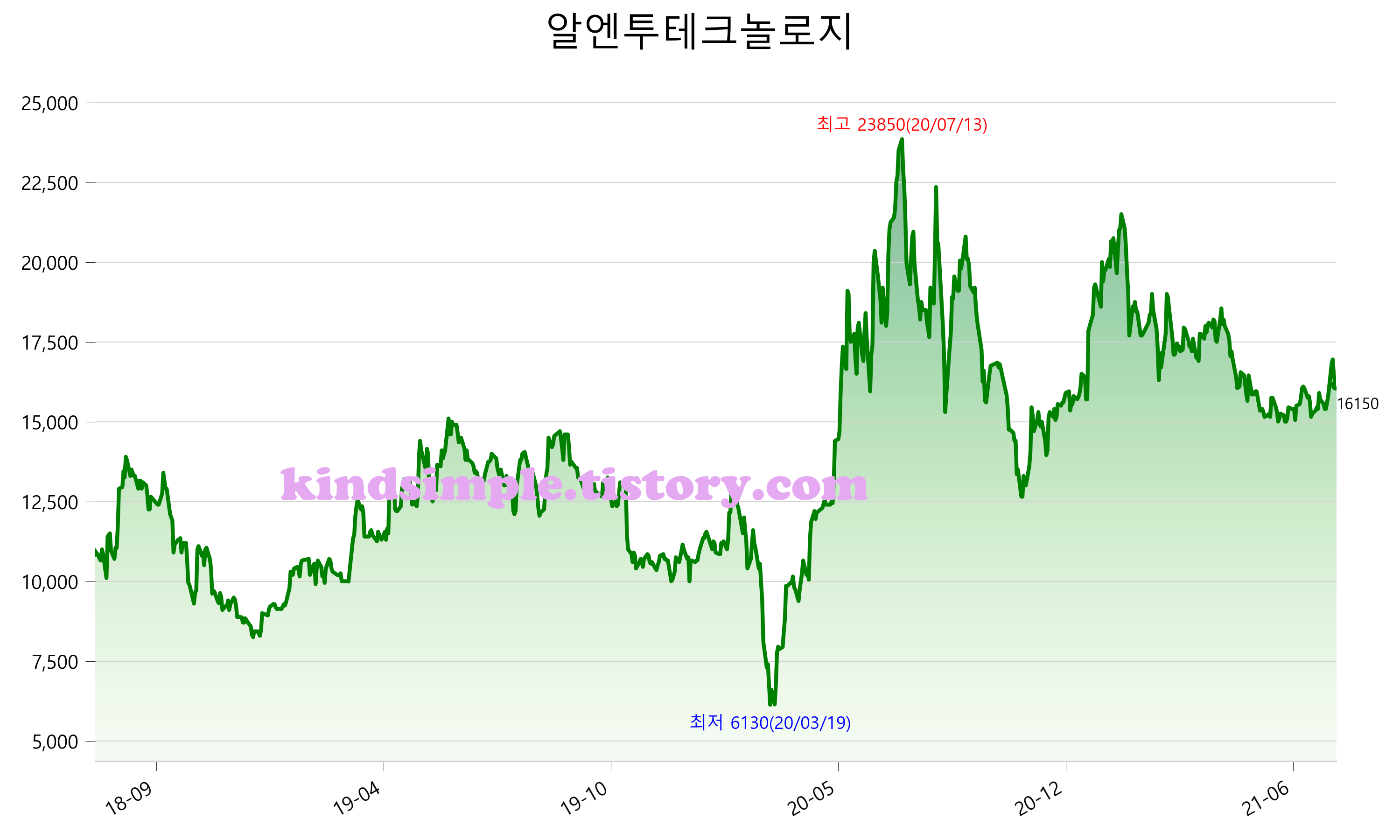 8월 1일 기준 주가는 16,150원 입니다. 아래는 최근 3년간의 주가흐름입니다.