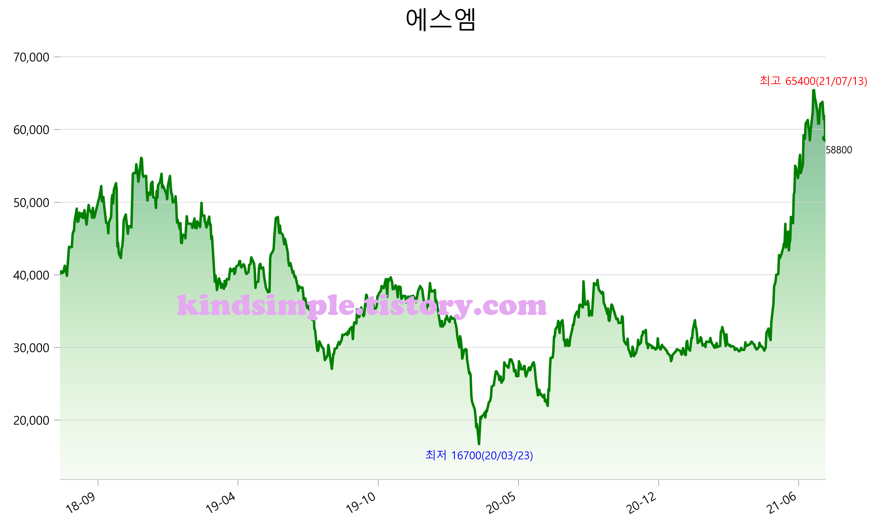 8월 1일 기준 주가는 58,800원 입니다. 아래는 최근 3년간의 주가흐름입니다.