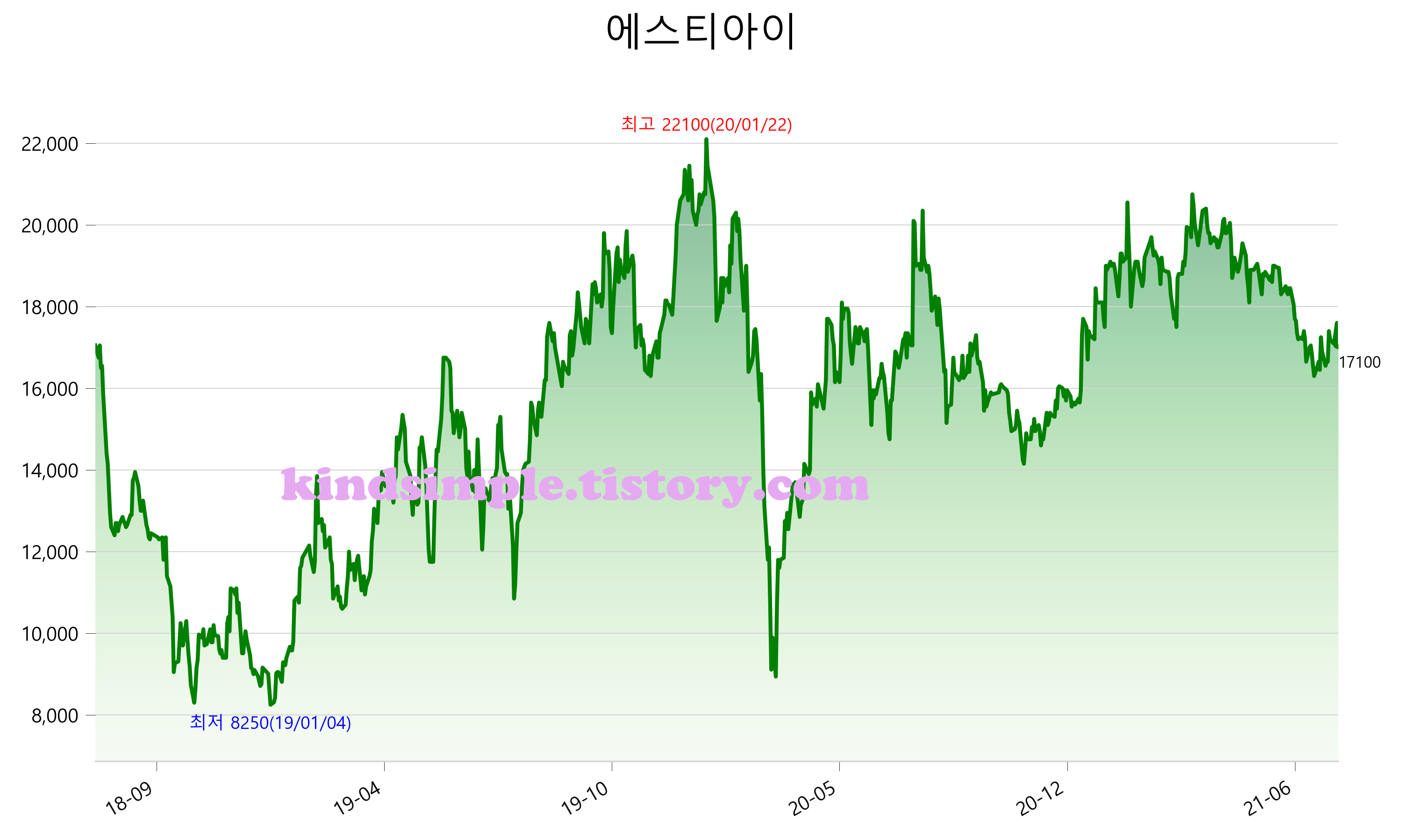 8월 1일 기준 주가는 17,100원 입니다. 아래는 최근 3년간의 주가흐름입니다.