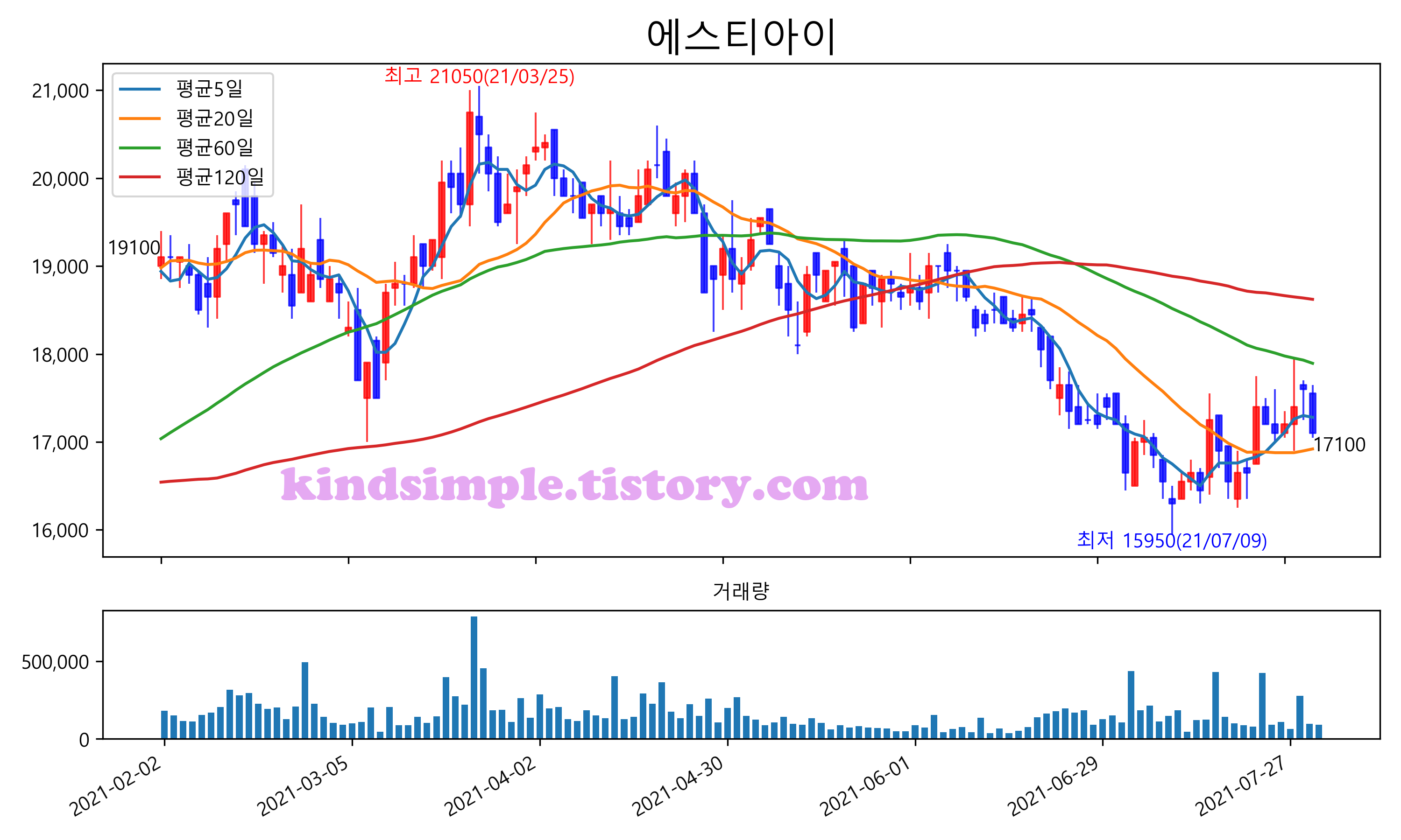 최근 6개월간 캔들차트 및 이동평균선입니다.