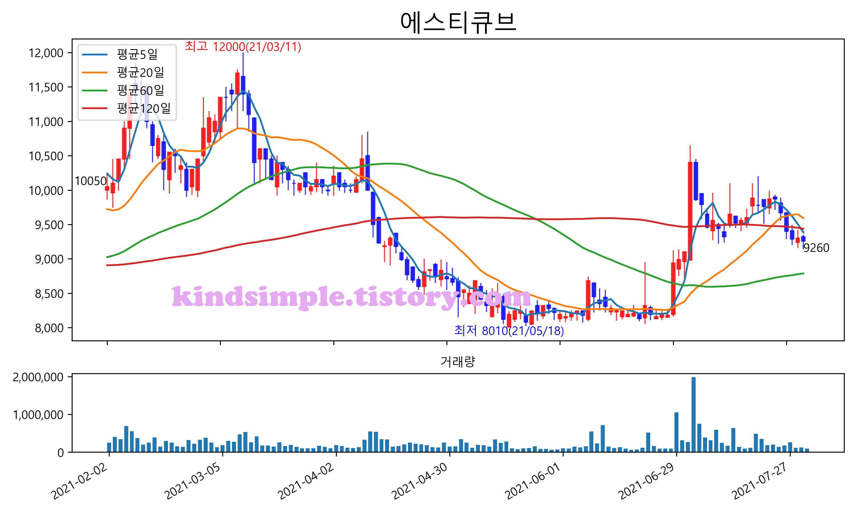 최근 6개월간 캔들차트 및 이동평균선입니다.