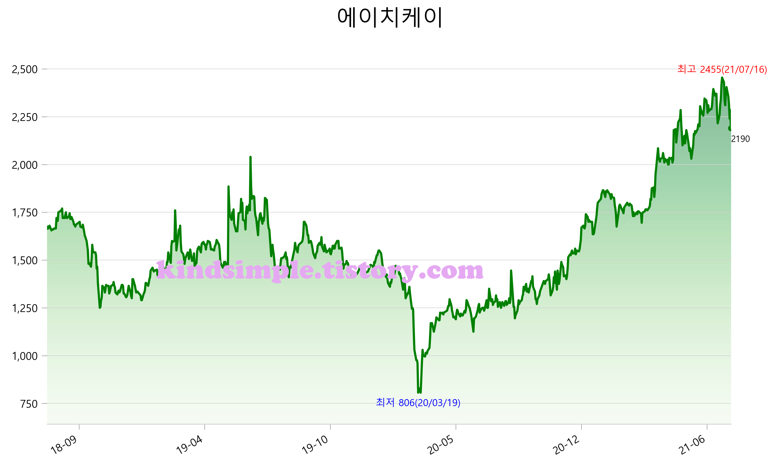 8월 2일 기준 주가는 2,190원 입니다. 아래는 최근 3년간의 주가흐름입니다.