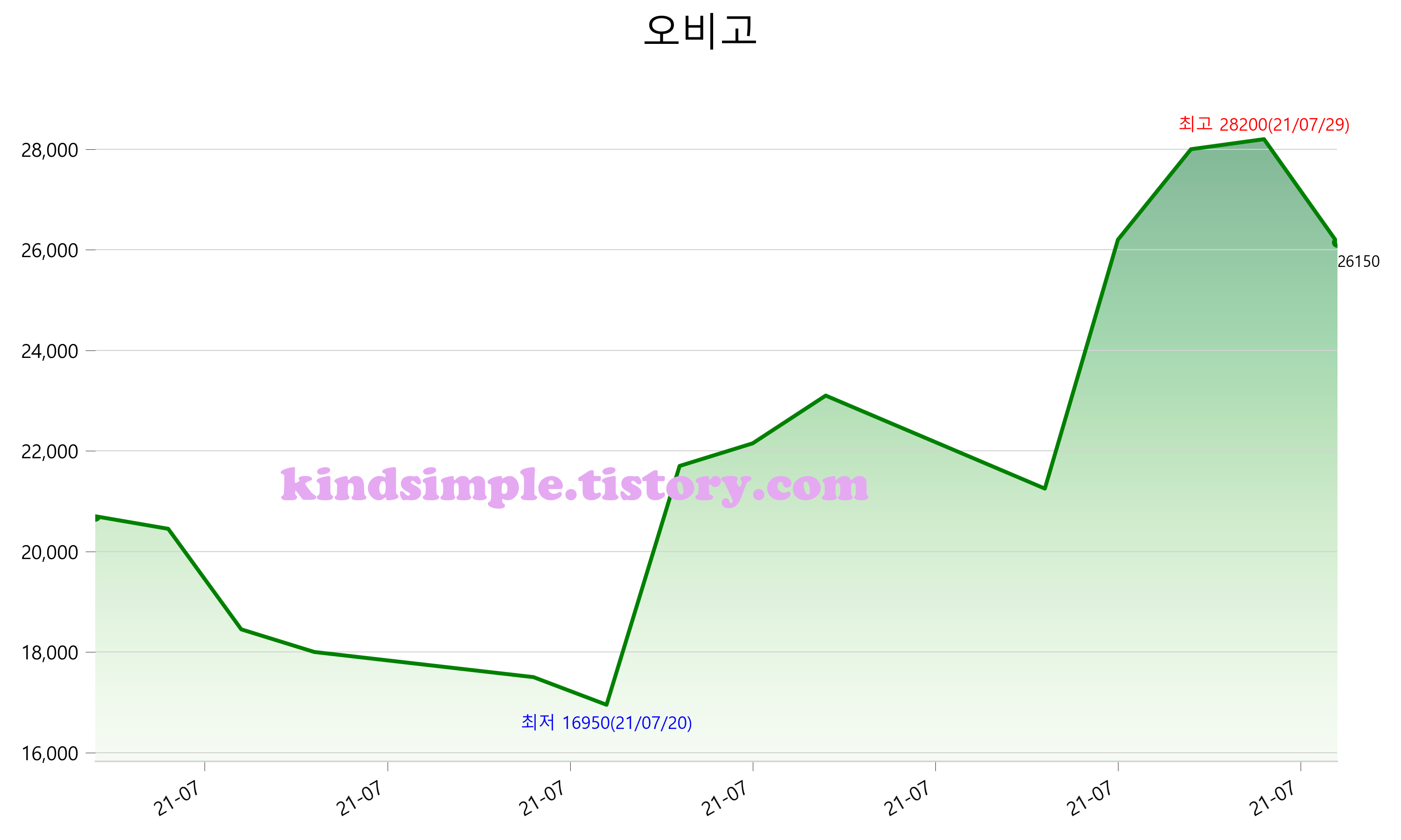 52주 최고가는 28,200원(2021-07-29), 52주 최저가는 16,950원(2021-07-20)으로 52주간 변동률은 26.3% 입니다.