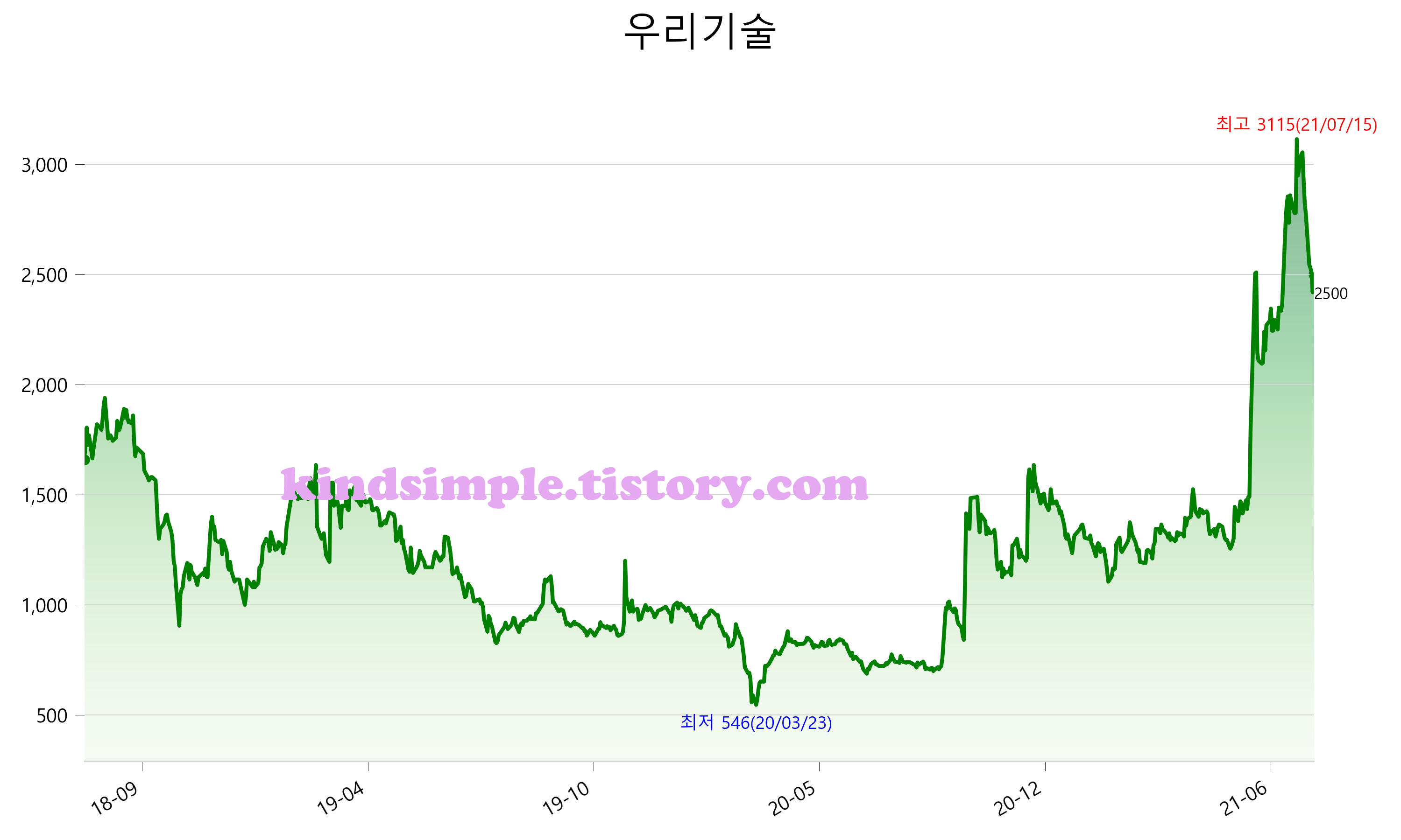 8월 2일 기준 주가는 2,500원 입니다. 아래는 최근 3년간의 주가흐름입니다.