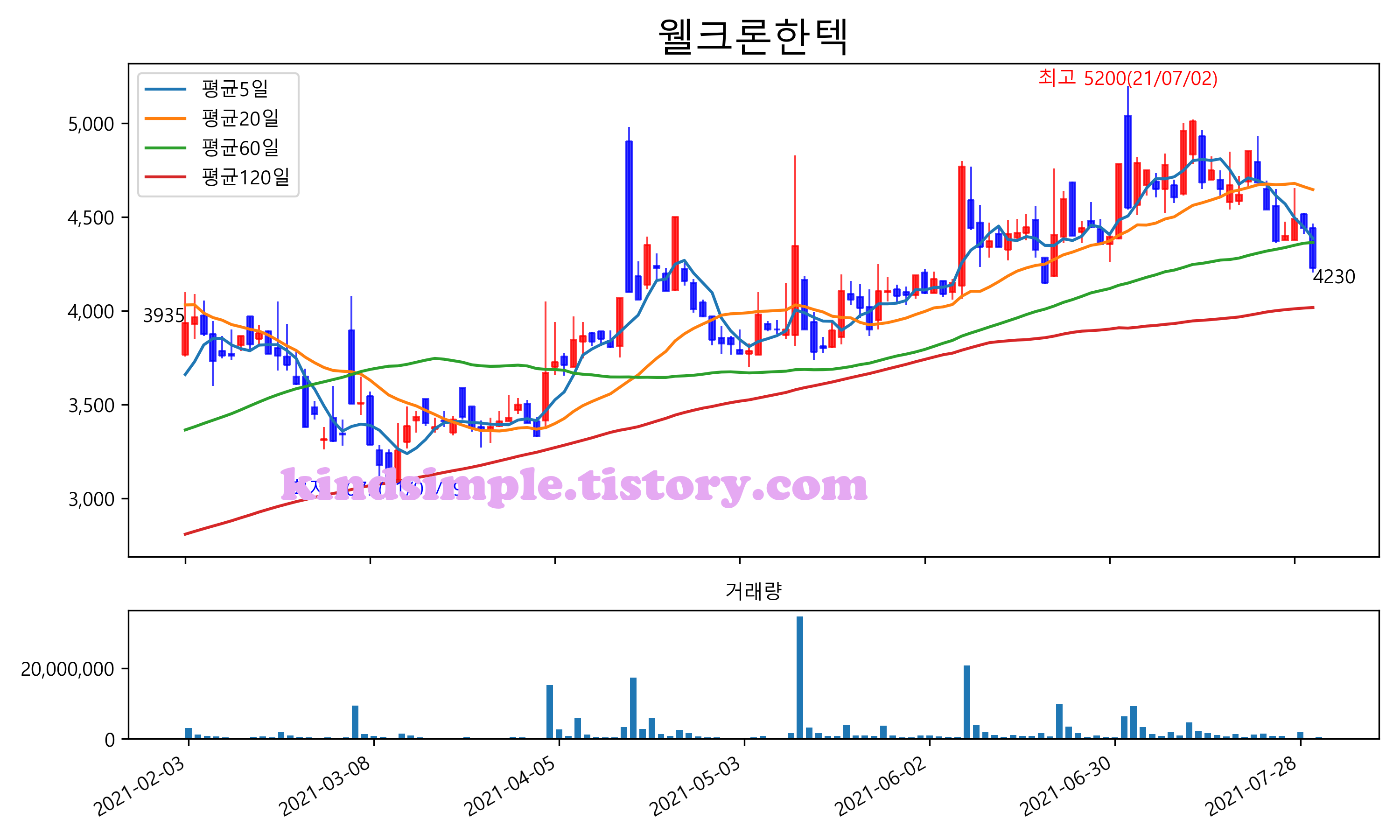최근 6개월간 캔들차트 및 이동평균선입니다.
