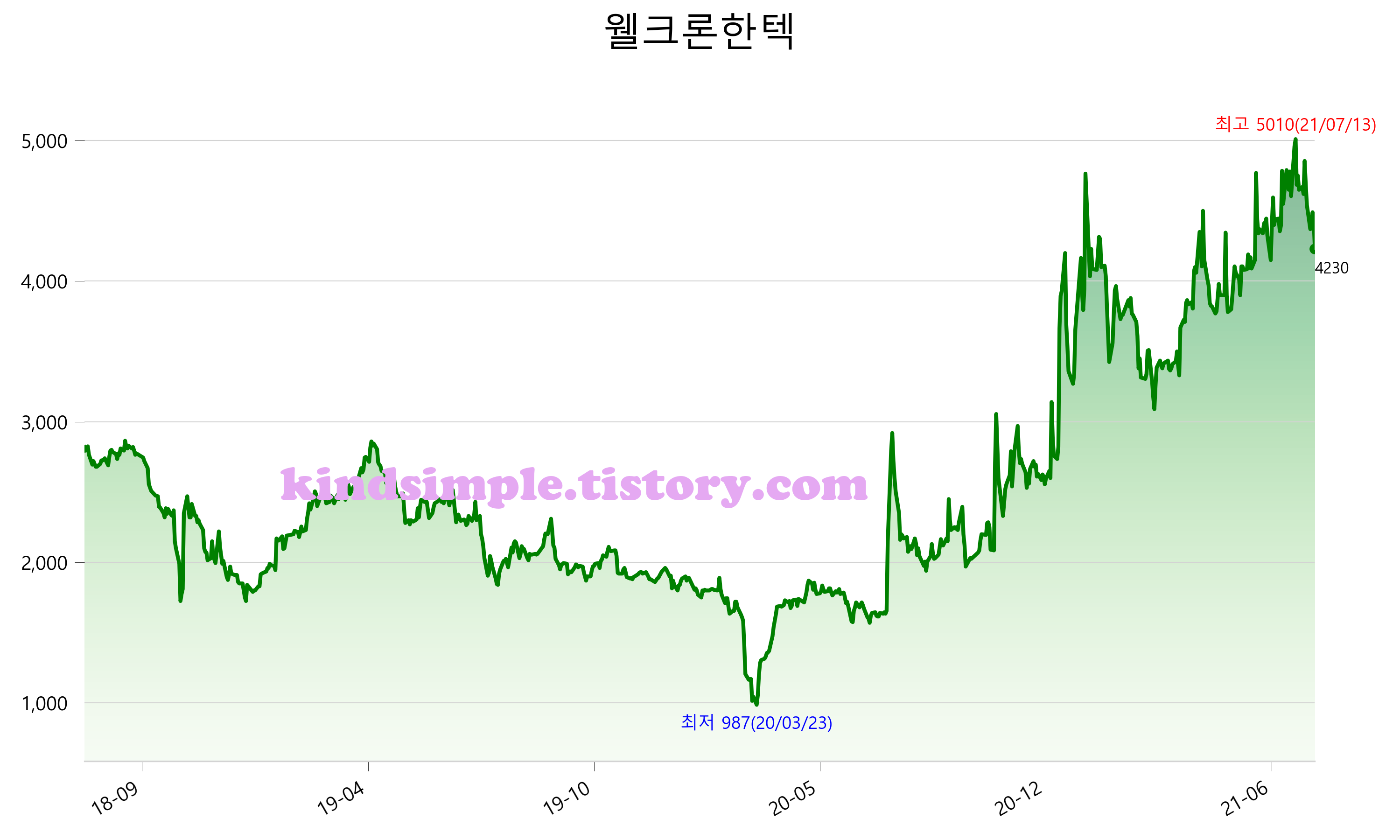 8월 2일 기준 주가는 4,230원 입니다. 아래는 최근 3년간의 주가흐름입니다.