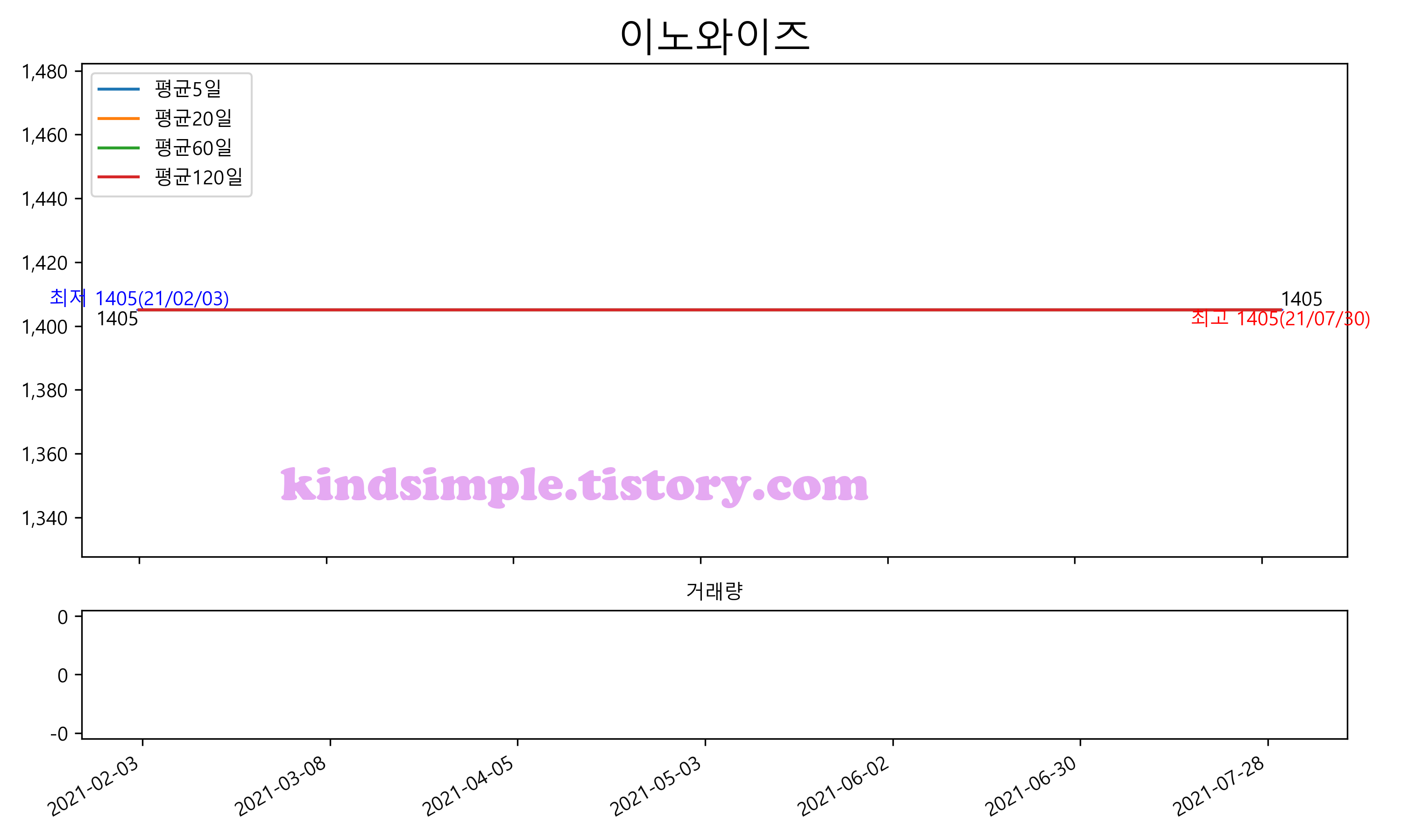 52주 최고가는 1,405원(2020-08-03), 52주 최저가는 1,405원(2021-07-30)으로 52주간 변동률은 0.0% 입니다.