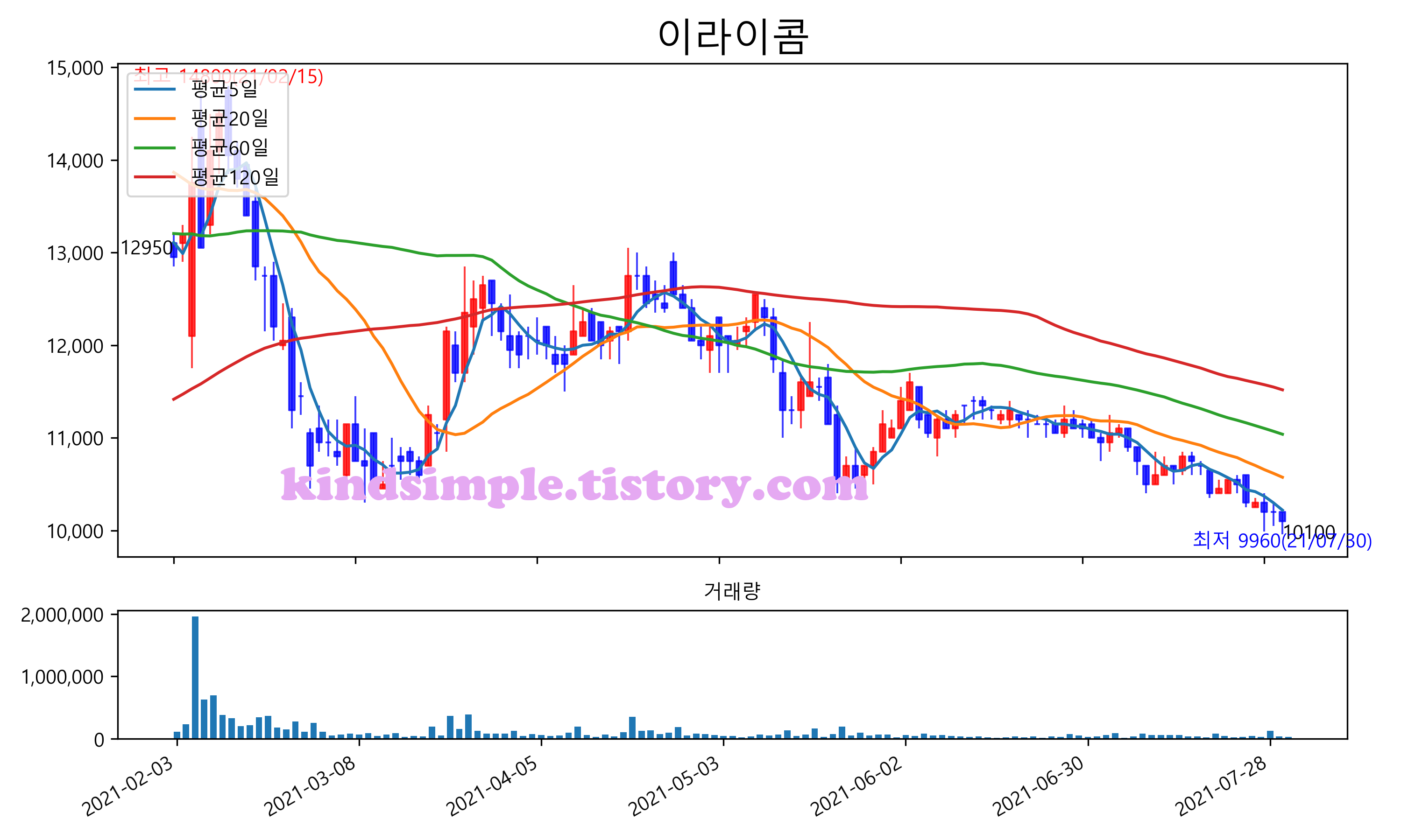 최근 6개월간 캔들차트 및 이동평균선입니다.