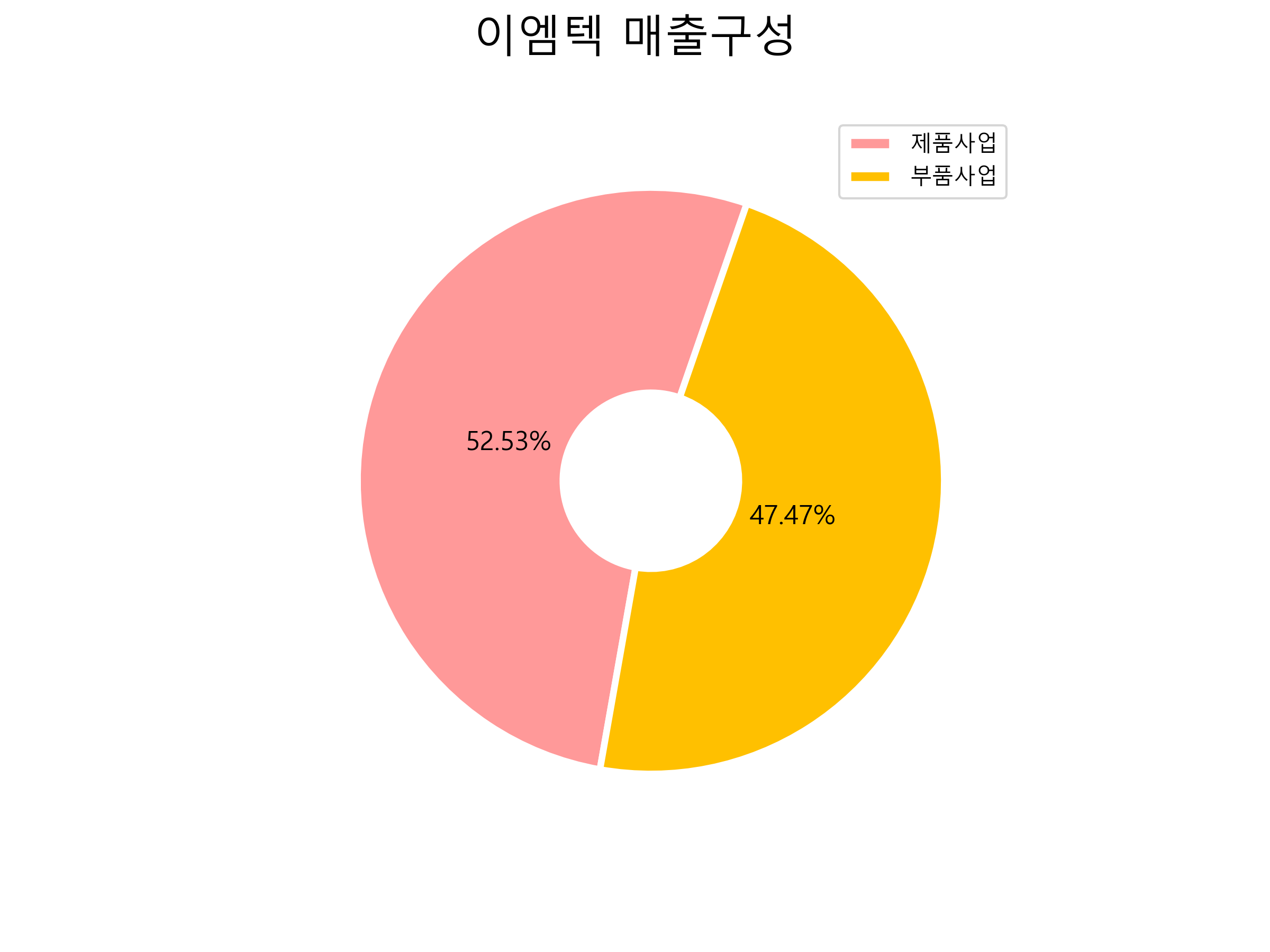 - 주요 사업부문은 이동통신단말기용 부품사업부와 Wireless 스피커, Wireless 이어셋, Smart 보청기, 전자담배 Device 등의 제품을 생산ㆍ판매하는 제품사업부 2개로 구성 됨.