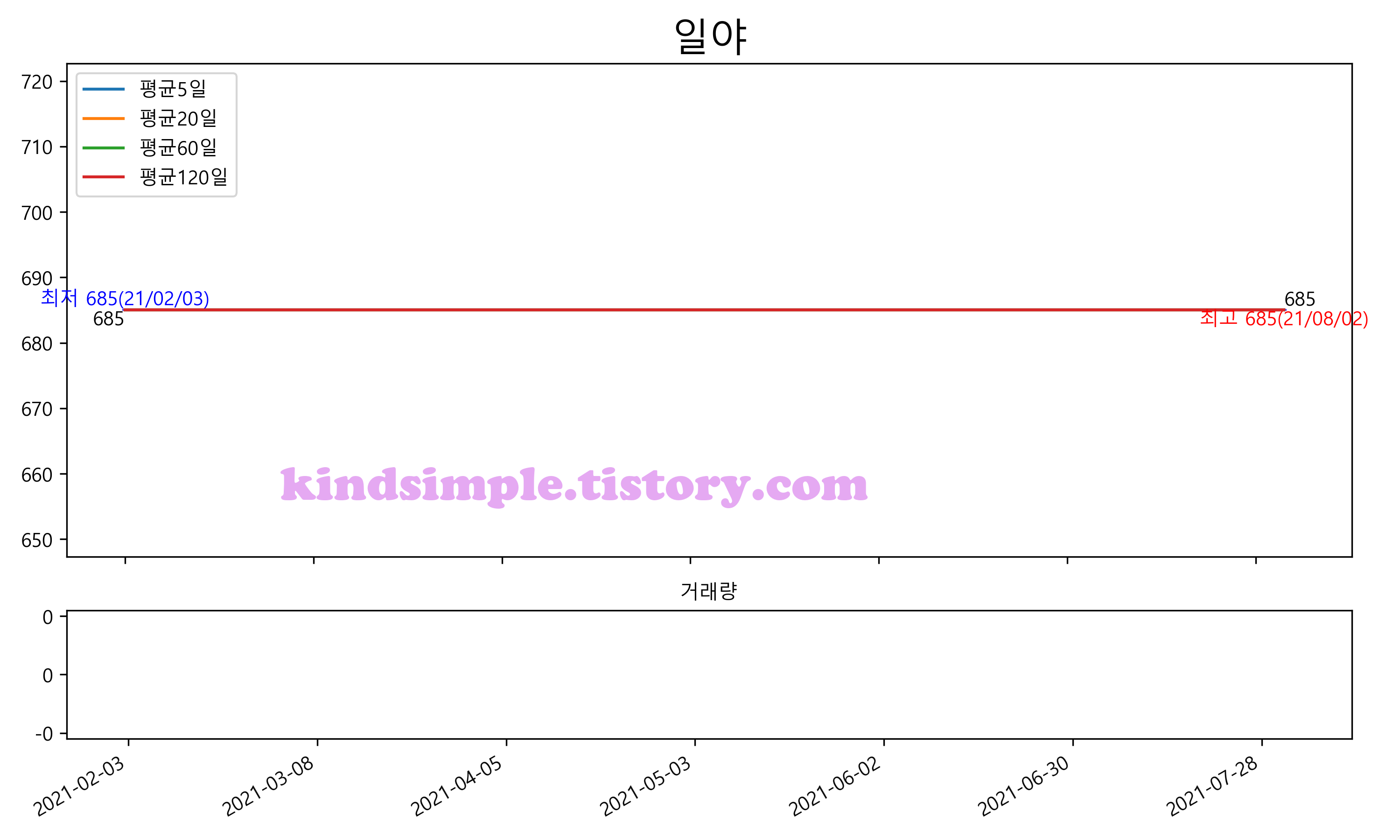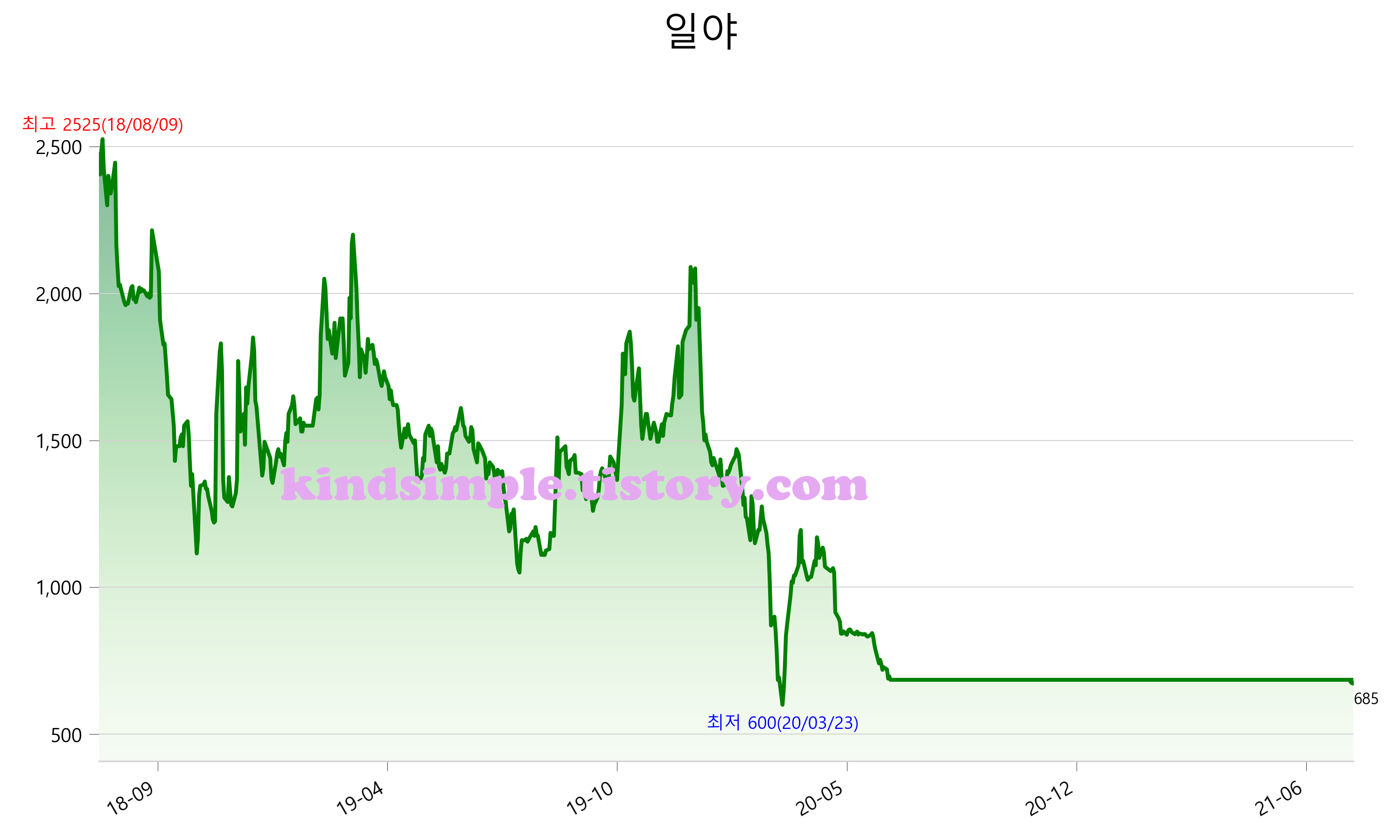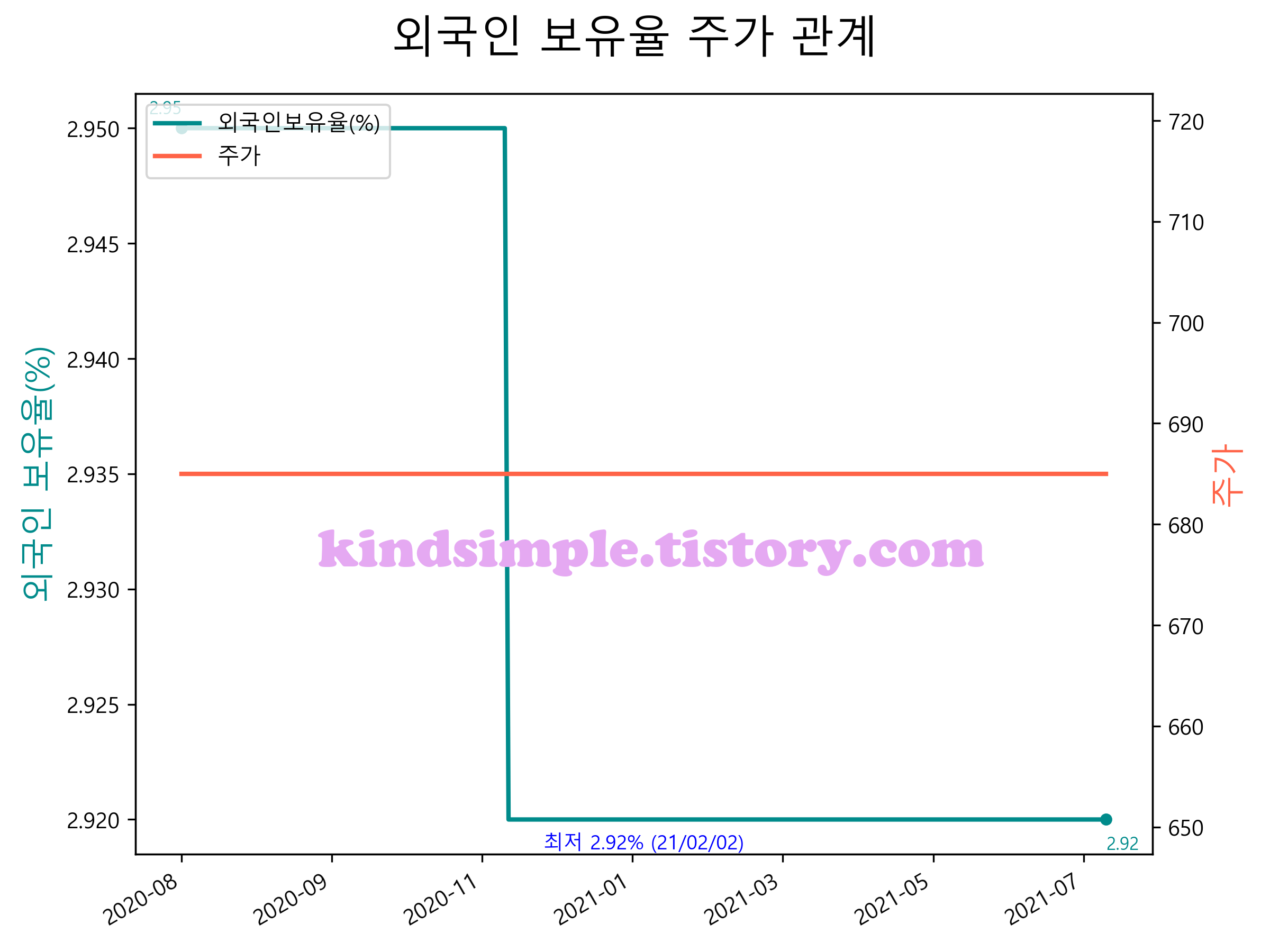 52주 최고가는 685원(2020-08-03), 52주 최저가는 685원(2021-08-02)으로 52주간 변동률은 0.0% 입니다.