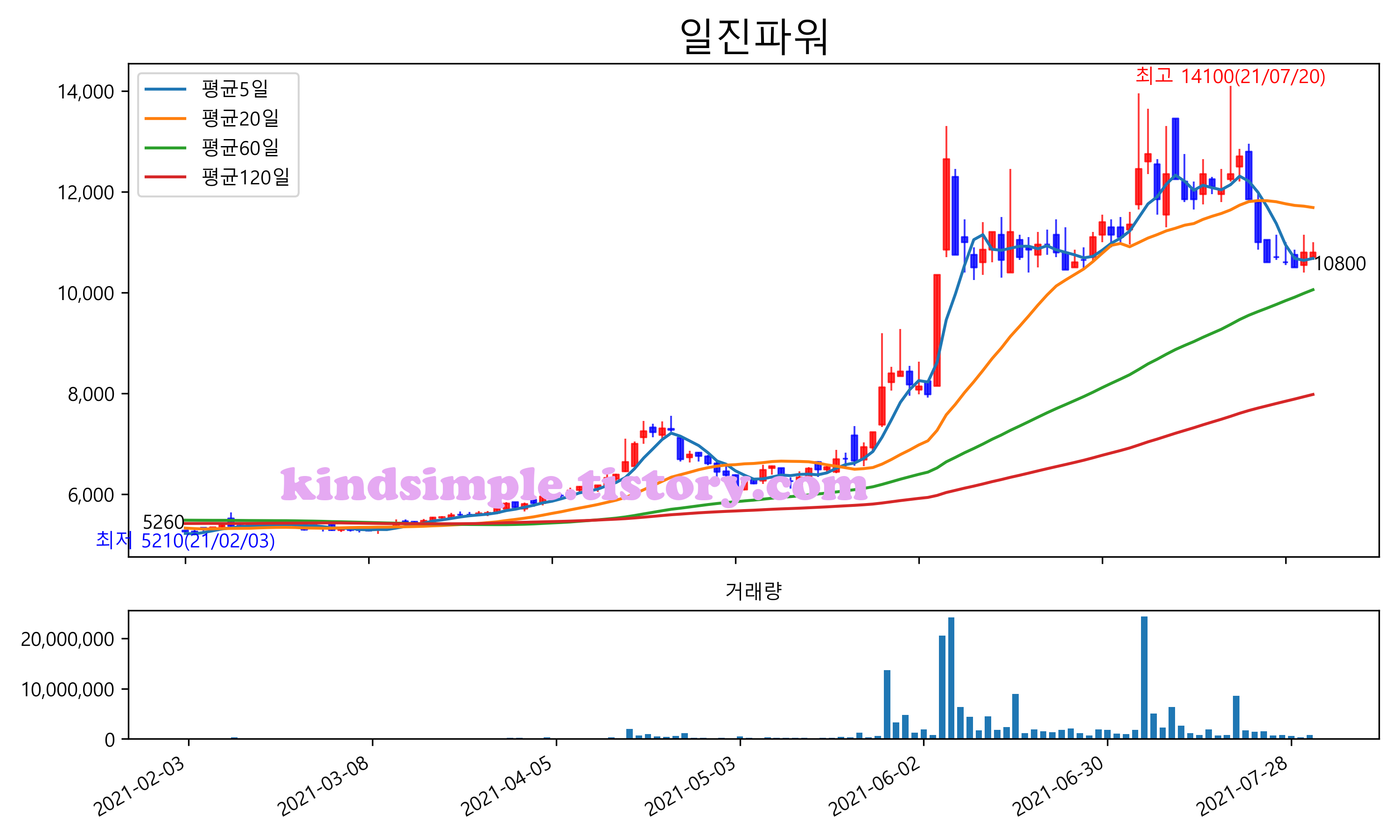 최근 6개월간 캔들차트 및 이동평균선입니다.