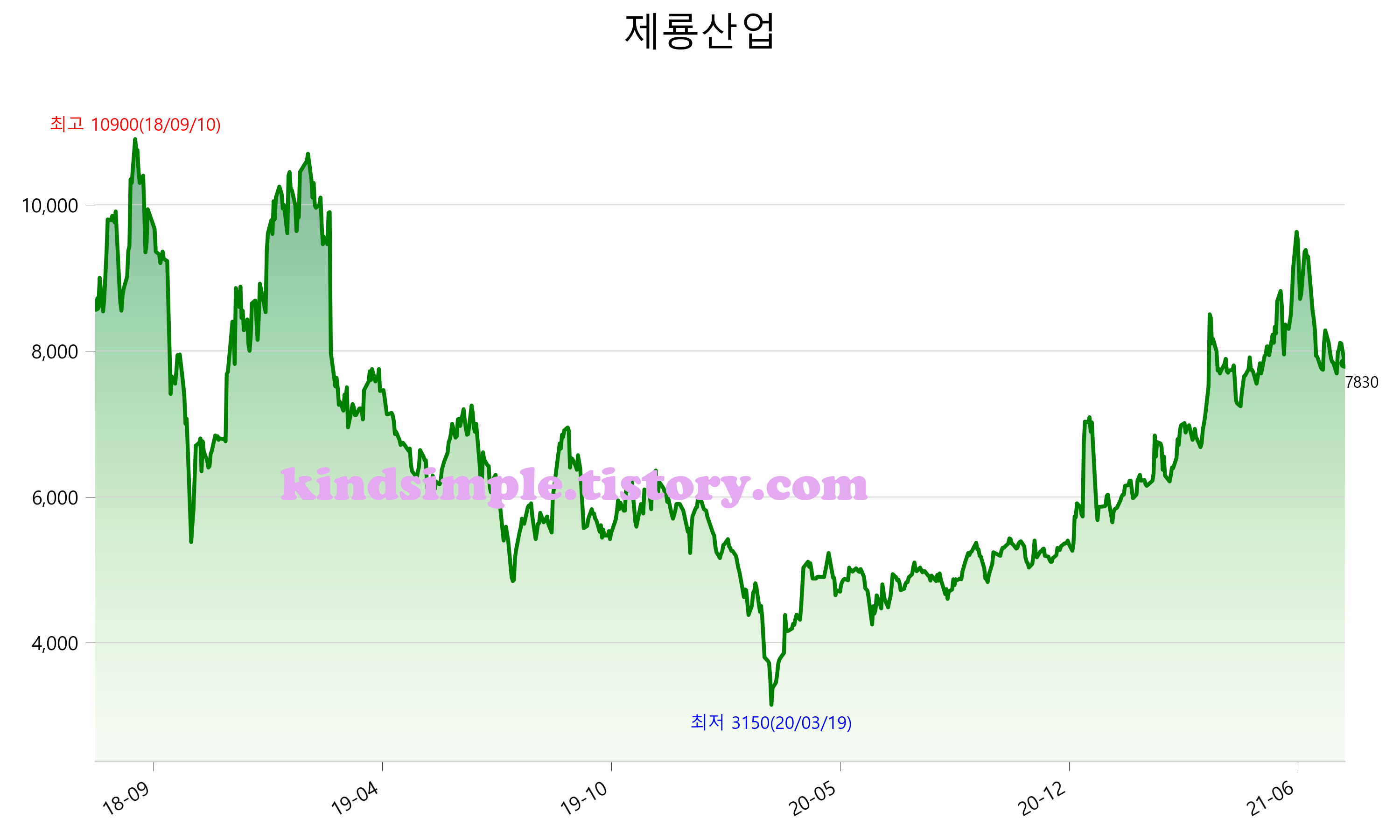 8월 2일 기준 주가는 7,830원 입니다. 아래는 최근 3년간의 주가흐름입니다.