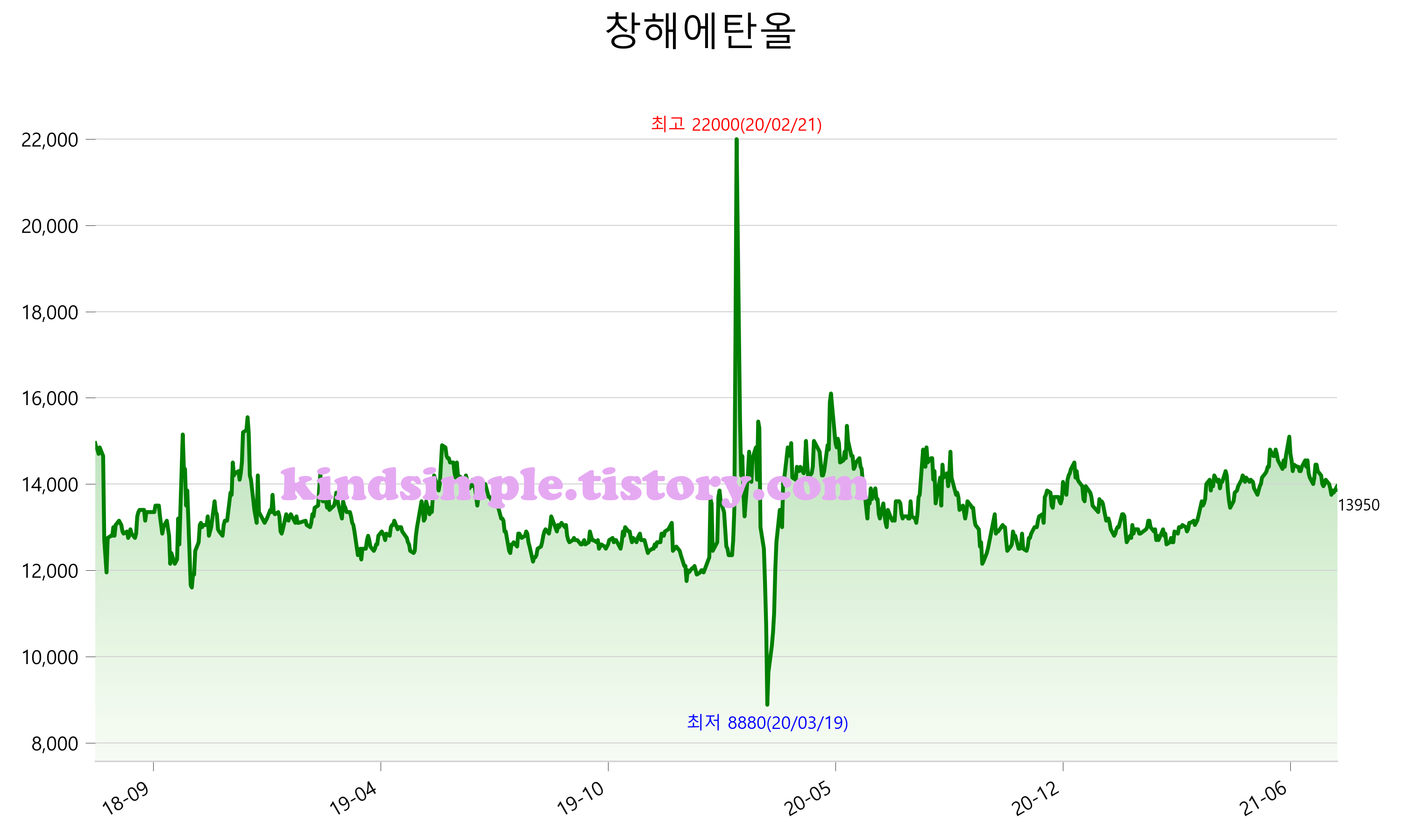 8월 3일 기준 주가는 13,950원 입니다. 아래는 최근 3년간의 주가흐름입니다.