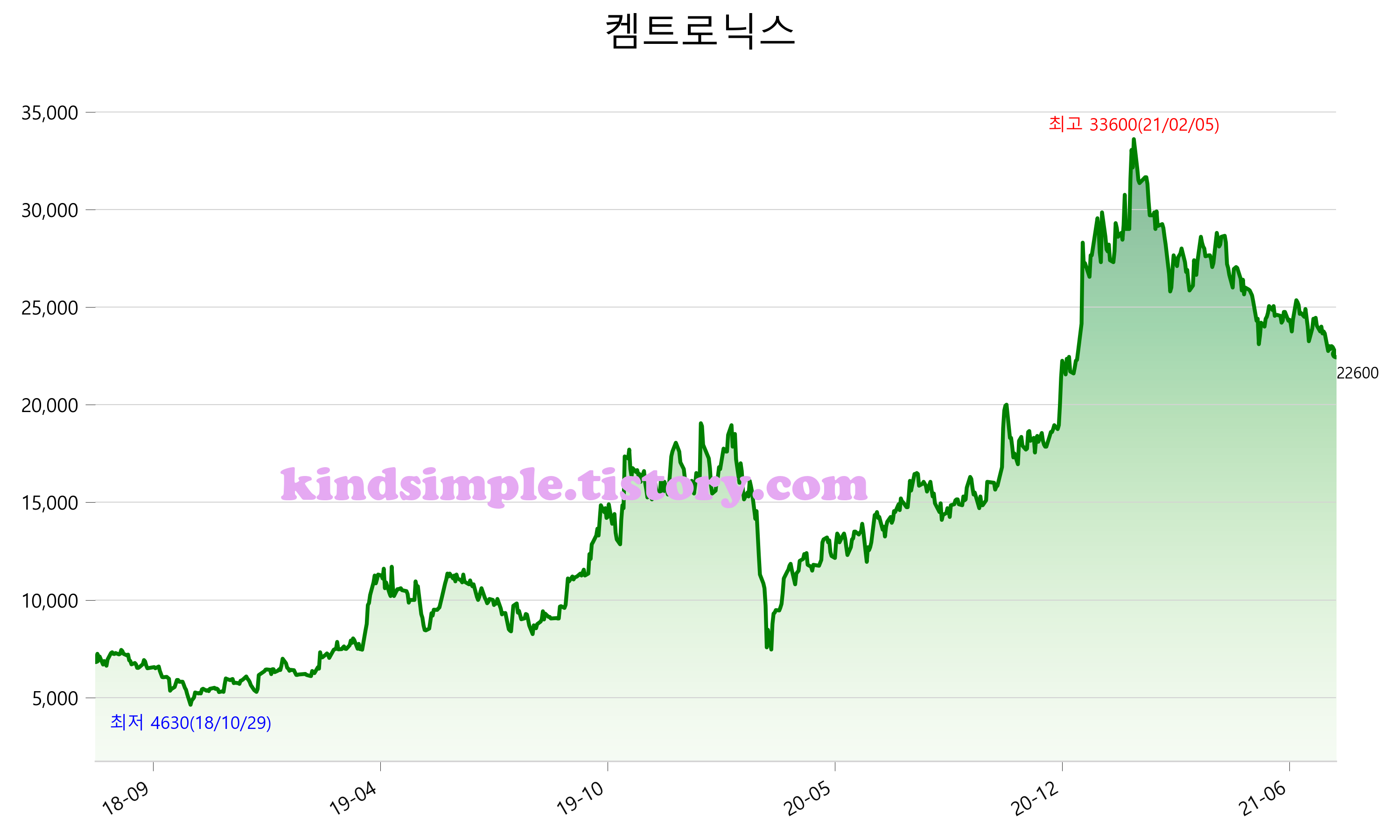 8월 3일 기준 주가는 22,600원 입니다. 아래는 최근 3년간의 주가흐름입니다.