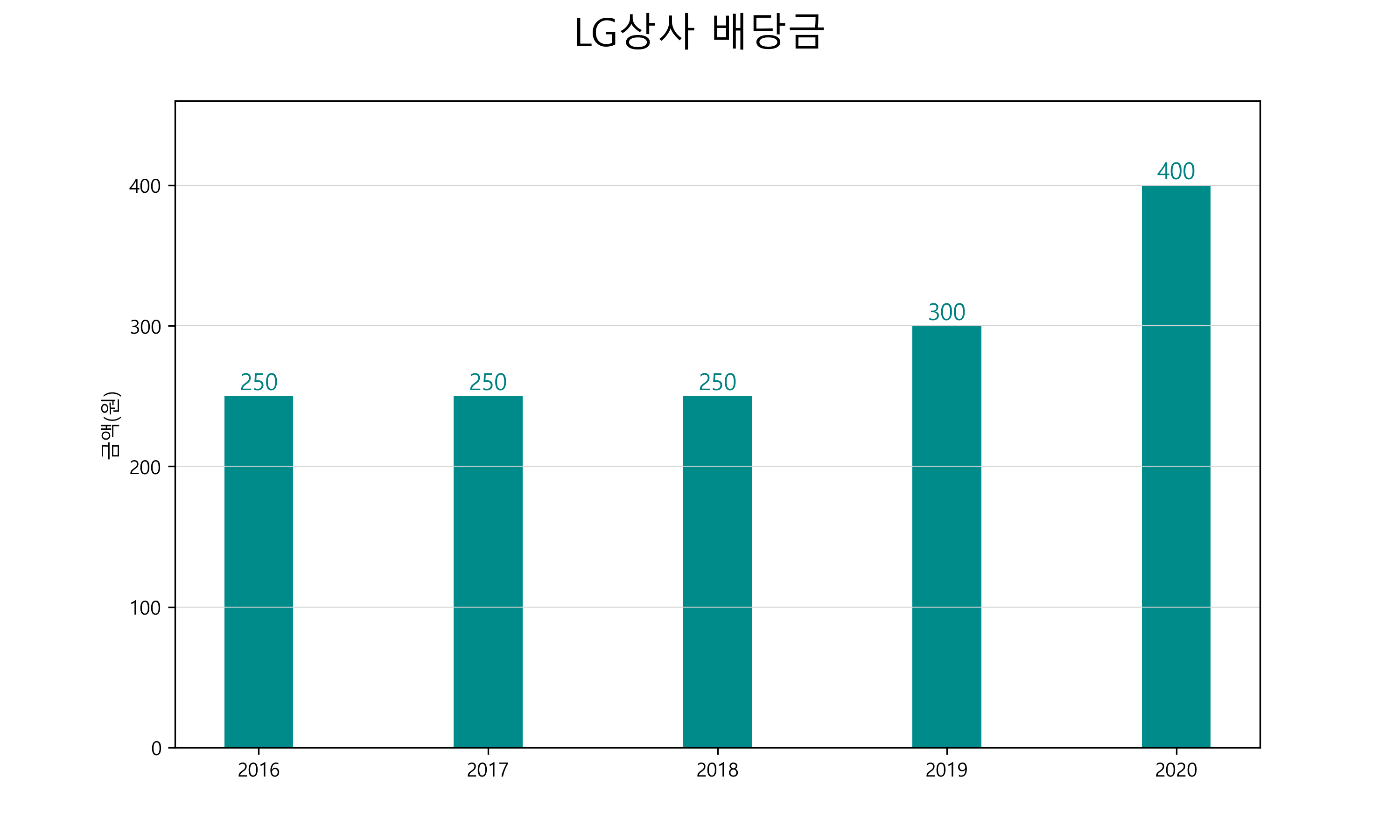 LG상사은 1년에 1번 배당을 실시하고 있으며 2021년 4월 중에 배당금을 지급합니다.