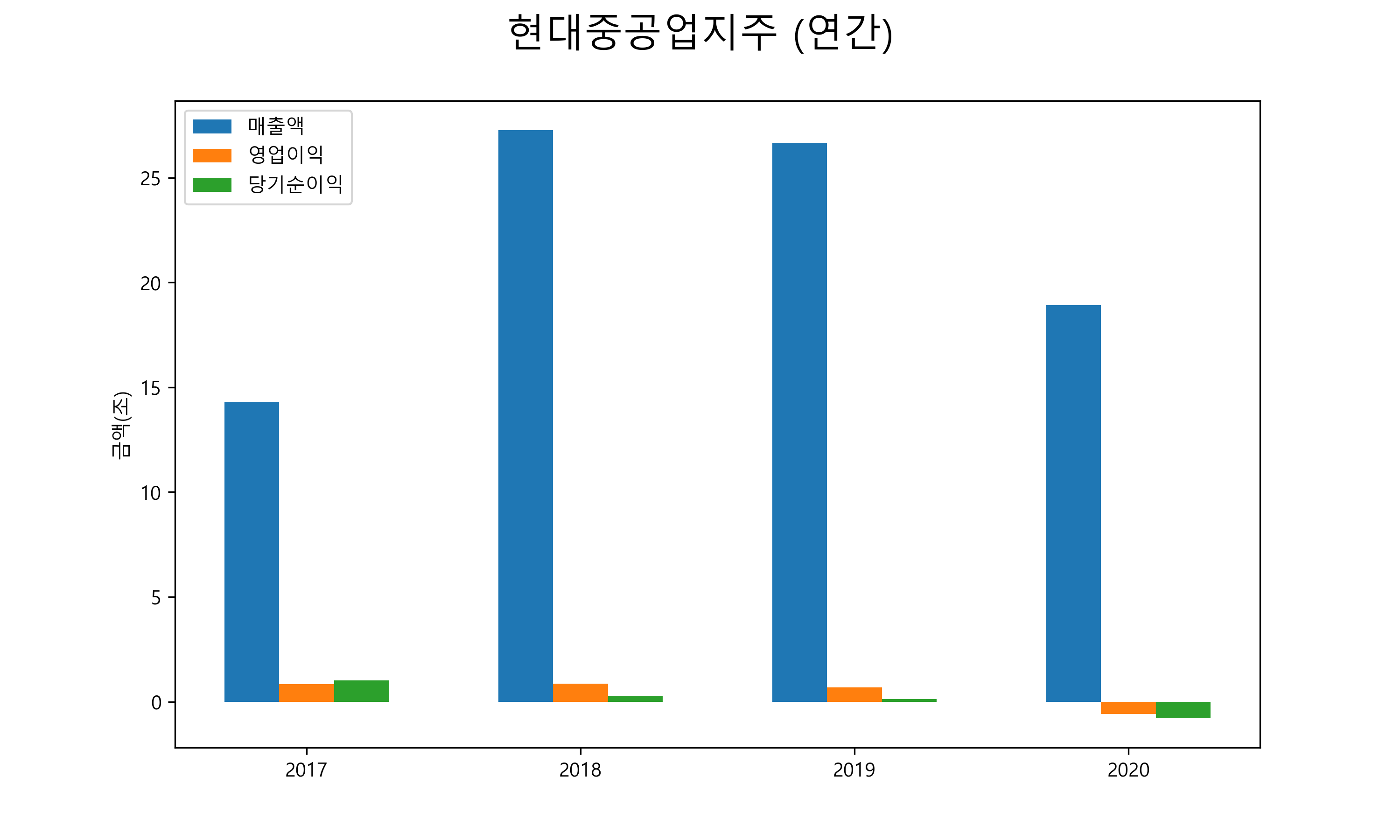 | 매출액 | 14조 2995억 | 27조 2566억 | 26조 6303억 | 18조 9110억 |