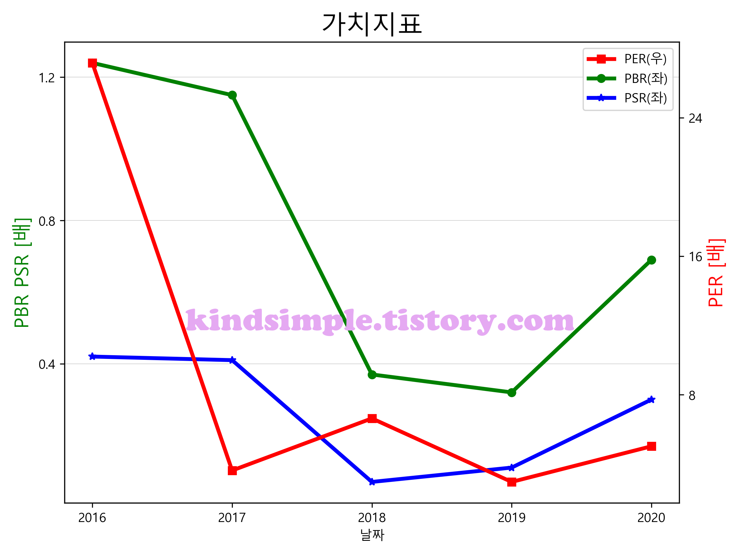 SK디스커버리의 PER, PBR, PSR입니다.