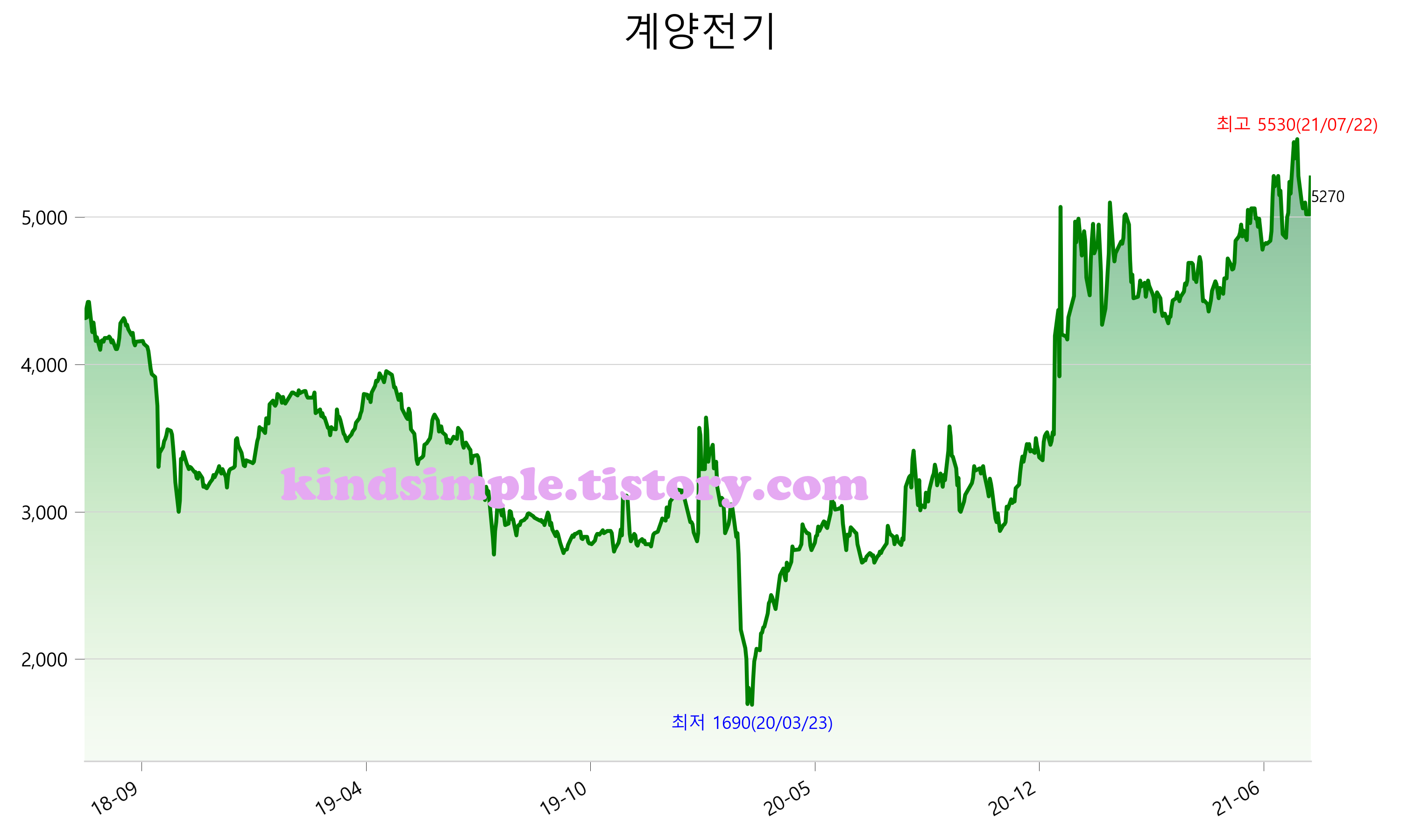 52주 최고가는 5,530원(2021-07-22), 52주 최저가는 2,810원(2020-08-05)으로 52주간 변동률은 87.5% 입니다.