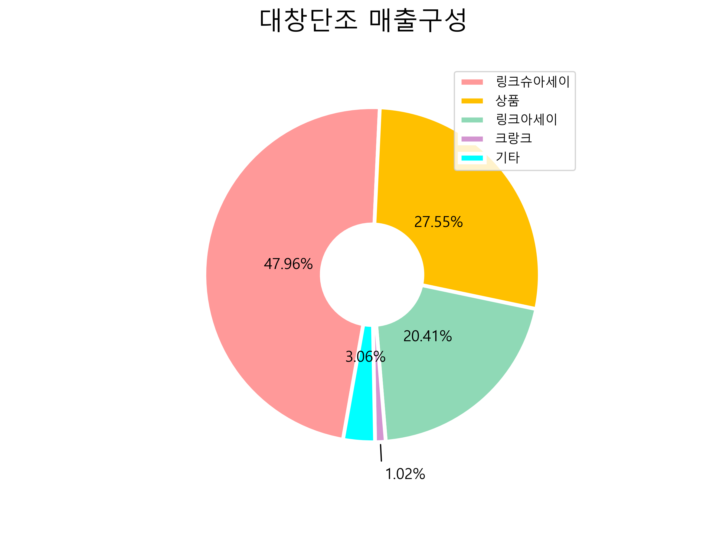 대창단조의 매출구성입니다.
